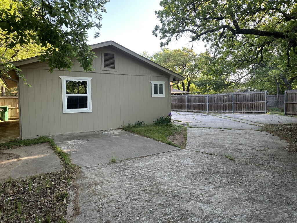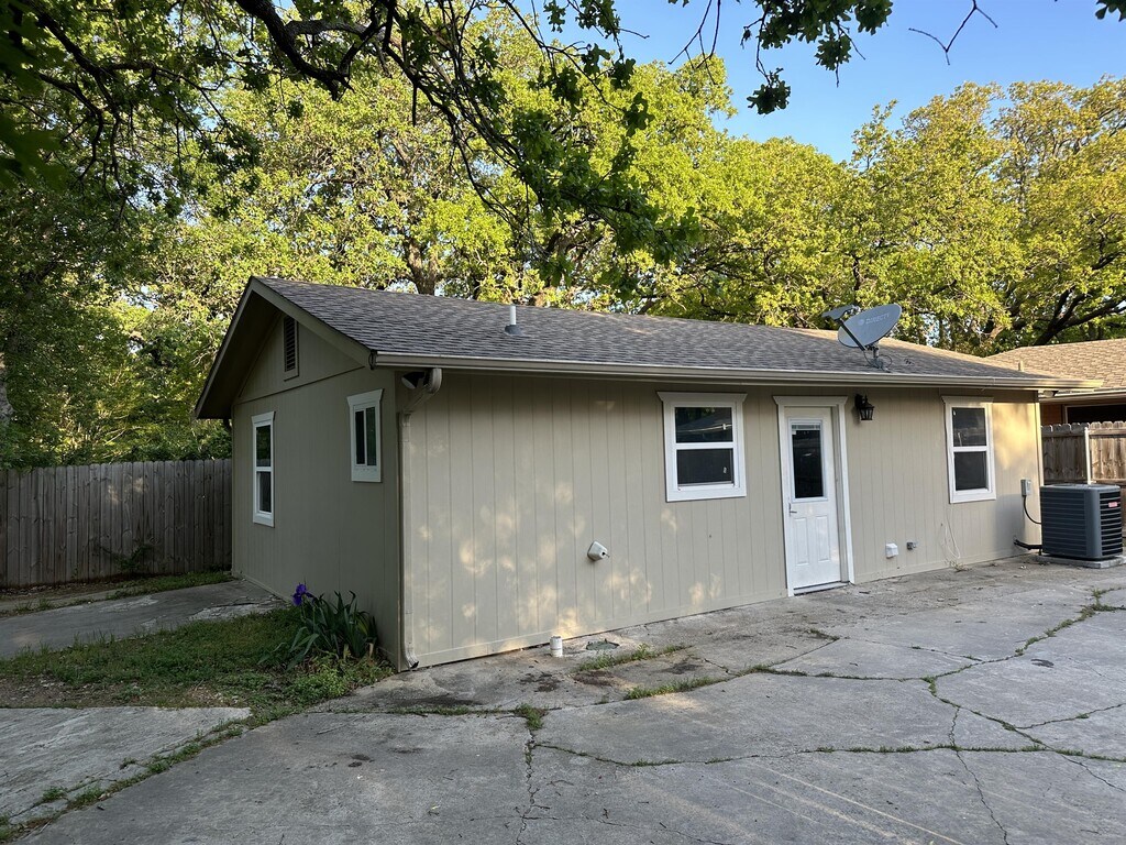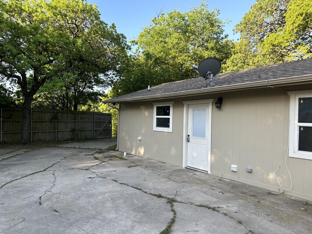 A standalone, 2 bed, 1 bath home, with private fenced parking and yard space. Convenient access off of University Dr or Laurelwood Dr, close to TWU. Stainless steal appliances with granite countertops in the open kitchen. Tile floors throughout the home make for easy cleaning and care. Washer and dryer connections for a stackable unit.