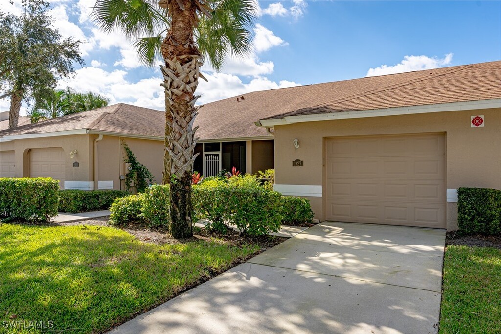 AVAILABLE FOR 2026 SEASON! Do not miss your opportunity to spend your winter in this beautiful Attached villa with GOLF COURSE & LAKES VIEWS! This villa offers a one car garage,2 bedrooms,open floor plan,a large screened front porch for your morning coffee and back lanai with western exposures for beautiful sunsets over the golf course and lake! Heritage Greens offer 2 community pools,community spa,tennis courts,and a play ground! It is located right off Immokalee close to the new Logan Landing shopping center,super markets,an abundance of dining options,and 30 minutes from the Naples beaches!