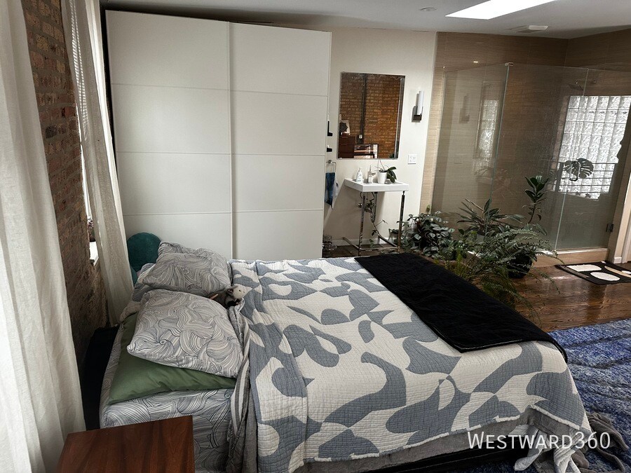 Located behind a stunning Logan Square greystone on grassy Humboldt Boulevard, this spacious 1 bedroom, 1 bathroom coach house is like living in your own single family home or townhome! Hardwood floors in the bedroom level with finished concrete in the living area. Large living room with space for dining table. Oversized kitchen with pantry and tons of cabinet space. In-unit washer/dryer. Great closet space and storage, central heat and air conditioning. Huge deck for grilling and chilling as well as shared back yard. Walking to Starbucks, restaurants, parks, Blue Line, and The 606. Pet friendly.
