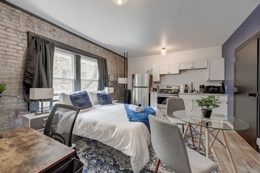 The advertised rate of $1,246/month is the lowest available price, based on a 1 month(s) and 2 day(s) stay with a move-in date of February 25, 2026. Rates vary depending on the duration of stay, season, and other parameters. For exact pricing and additional pricing components, please visit our website and enter your desired move-in and move-out dates. The rate is applicable when billed upfront; it can be higher if billed in multiple payments. Relax and feel at home in this stylish studio apartment right in the heart of downtown Milwaukee. You’ll be surrounded by award-winning restaurants, local shops, historic landmarks, and some of the city’s best attractions. With everything so close, getting around Milwaukee and beyond is easy. Settle in and enjoy a comfortable stay in this thoughtfully designed studio apartment. The space is created with both people and the planet in mind, pairing mindful living with attentive service and amenities. The open layout brings the kitchen, dining, and living areas together in a clean, modern flow that feels spacious and welcoming. Every detail is designed to make the apartment both functional and inviting, whether you are here for a short stay or a longer visit. The studio features a fully equipped kitchen with a microwave, stove, oven, refrigerator/freezer, toaster, coffee maker plus coffee essentials, electric kettle, sink with hot and cold water, trays, glasses, silverware, and pots and pans. The inviting full bathroom is completely private and separated from the main room and is stocked with essential toiletries. A 4K 55" HDR smart TV and reading lamps are included. There is no parking included. There is parking throughout the neighborhood (meter, free street parking, etc.). The city of Milwaukee requires permits for overnight parking on the street, and you will be able to get up to 3 nights by calling the city or by filling out an online form. Situated in the heart of Milwaukee's popular East Side neighborhood, which is known for its diverse range of activities, food, nightlife, and tourist attractions. Visitors to this area will find no shortage of things to do and explore during their stay. One of the most popular attractions in the area is the Milwaukee Art Museum, located just a short drive or bike ride away. For those looking to experience some of Milwaukee's famous beer culture, there are numerous breweries and beer gardens located throughout the East Side. Foodies will also be spoiled for choice in the East Side, with a wide range of dining options available to suit every taste and budget. When it comes to nightlife, the East Side is home to some of the best bars, nightclubs, and music venues in Milwaukee. For those looking to explore the outdoors, the East Side offers plenty of opportunities for hiking, biking, and other outdoor activities. This apartment does not accept local bookings, and all guests must be 23 years old and above. Quiet hours are between 10pm and 8am every day. If there are noise complaints or any violation of this rule, it may result in cancellation of booking and removal from property without refund. There is a strict no-party policy, and if there is a party of any kind, the police will be called and everyone will be removed from the property with no refunds. No unauthorized guests are allowed at the unit, and there is a $100 fine per guest if discovered. Smoking is prohibited without exception on this property, and if any signs of smoking are found in the unit or on the premises, a fine of $500 will be imposed, no exceptions. If you are found to have brought pets without prior notification, there will be a $500 fee. If the noise monitors are tampered with, there will be a fee. If there are noise complaints or any violation of this rule, it may result in cancellation of booking and removal from property without refund. There is a $500 late check-out fee, no exceptions. You may be charged extra for cleaning if the property is left in a state that necessitates additional cleaning. Lost or unreturned keys will result in a fee of $80 for key replacements and $150 for key fob replacements. Includes an office desk and chair and high-speed Wi-Fi. [SI]