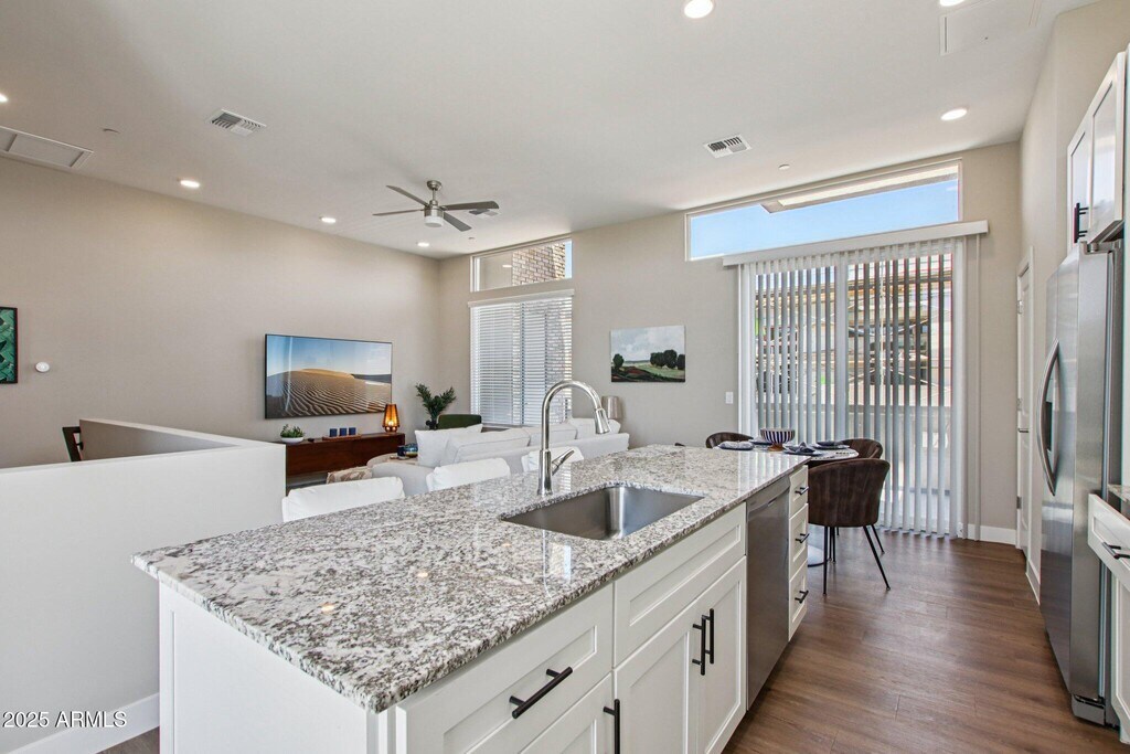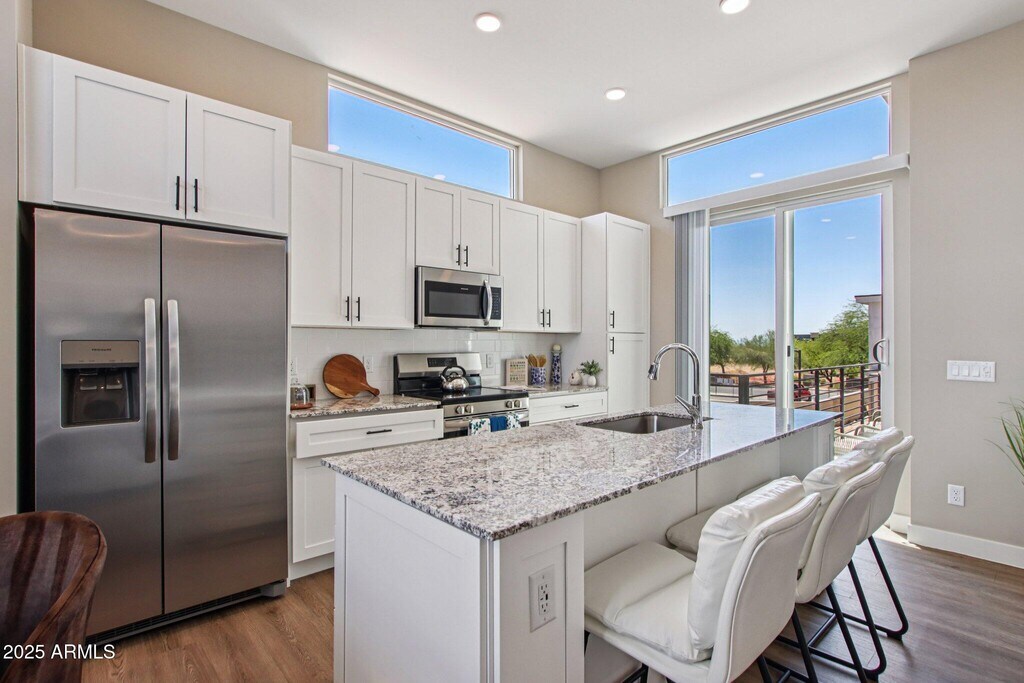 Welcome to Recker Ranch Where Comfort Meets Convenience Discover spacious 3-bedroom,3-bathroom townhomes designed for modern living at Recker Ranch. Nestled in a gated community on the Mesa Gilbert border,these thoughtfully crafted homes offer 1,379 square feet of open-concept living with private,street-level entry and oversized 2-car attached garages. Enjoy stylish interiors with granite countertops,stainless steel appliances,wood-style flooring,soft-close cabinetry,and 9'+ ceilings that fill your home with natural light. Every bedroom is its own suite,complete with walk-in closets and private bathrooms,ensuring comfort and privacy. Step outside to unwind on two private decks or your front patio,or explore the community's resort-style amenities including a pool,spa,fitness studio,dog park,Zen garden,firepit,and BBQ grills. Smart home features like digital locks,Ring doorbells,Nest thermostats,MyQ garage access,and Cox fiber internet make daily living easy and secure. Minutes from shopping,dining,healthcare,and major freeways Recker Ranch offers the perfect blend of tranquility and accessibility. Now leasing! Schedule your tour today and experience the lifestyle you've been looking for.