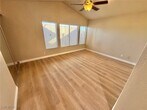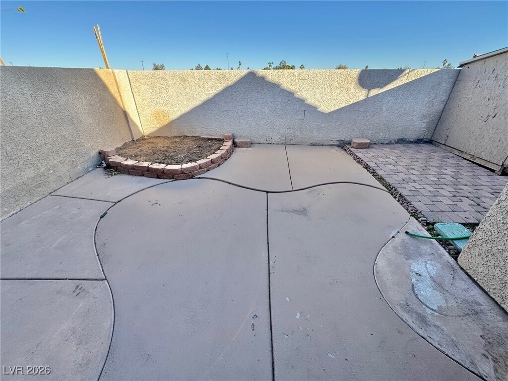 Single-story charming west Las Vegas home featuring 3 bedrooms and 2 baths. Vaulted ceilings provide an open, airy feel. Living and dining areas connect to the kitchen with black appliances and ample counter space. Living room includes a gas fireplace. Built-in closets throughout. Primary suite features a double vanity. Backyard offers space for entertaining.