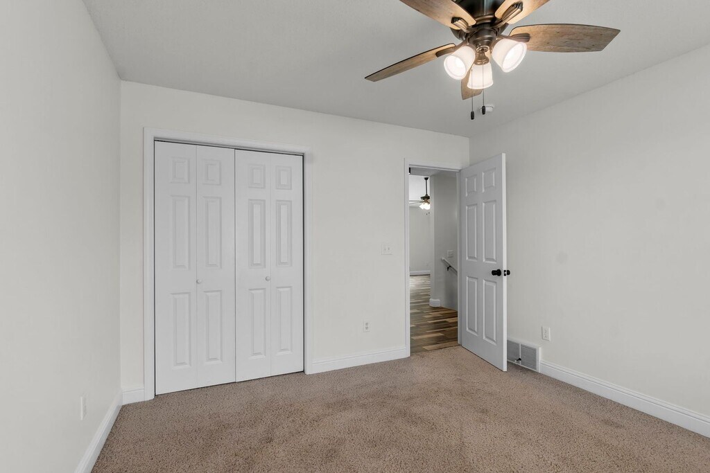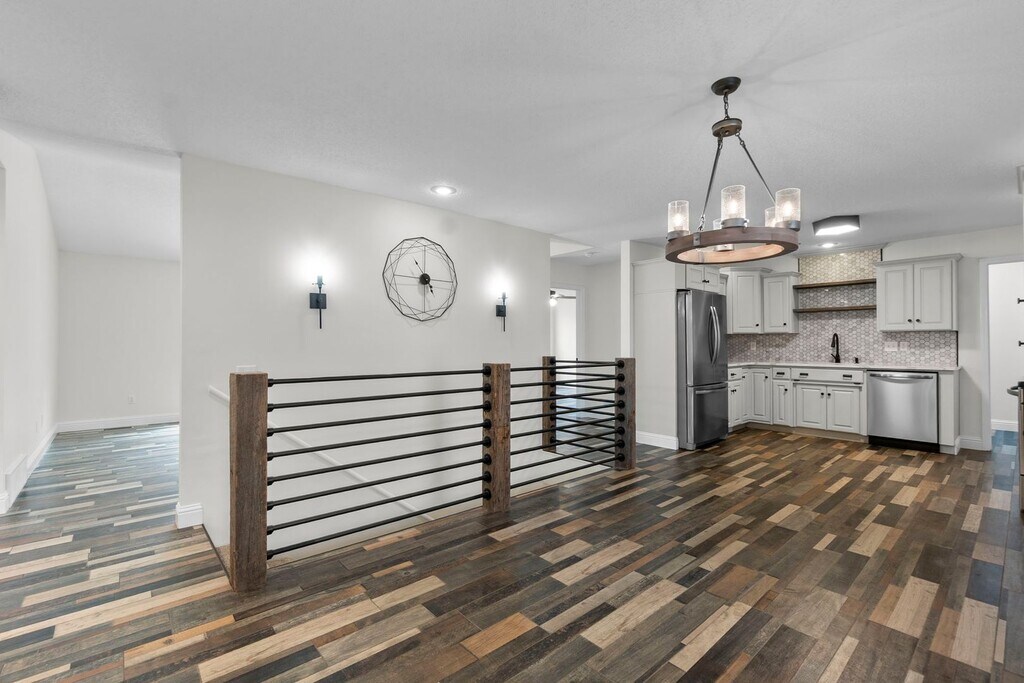 This stunning 4-bedroom, 2-bathroom home offers the perfect blend of style, comfort, and functionality. The main level features beautiful hard-surface flooring throughout and a bright, modern kitchen complete with crisp white cabinetry, a tile backsplash, and stainless steel appliances. A custom railing adds character and leads to the partially finished walkout basement, providing additional living or recreational space. Both bathrooms have been updated with tile flooring, and the convenience of a main-level laundry room. Step outside to a spacious deck overlooking a large, flat, fenced backyard. One small pet under 35lbs (at max mature weight) may be considered with additional monthly pet rent and deposit. Rental Qualifications: •$35 application fee per adult •Background and credit check required •Required credit score of 650 •Monthly income must be at least 3x the rent •Co-signers are not accepted