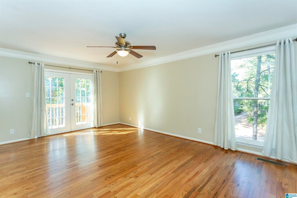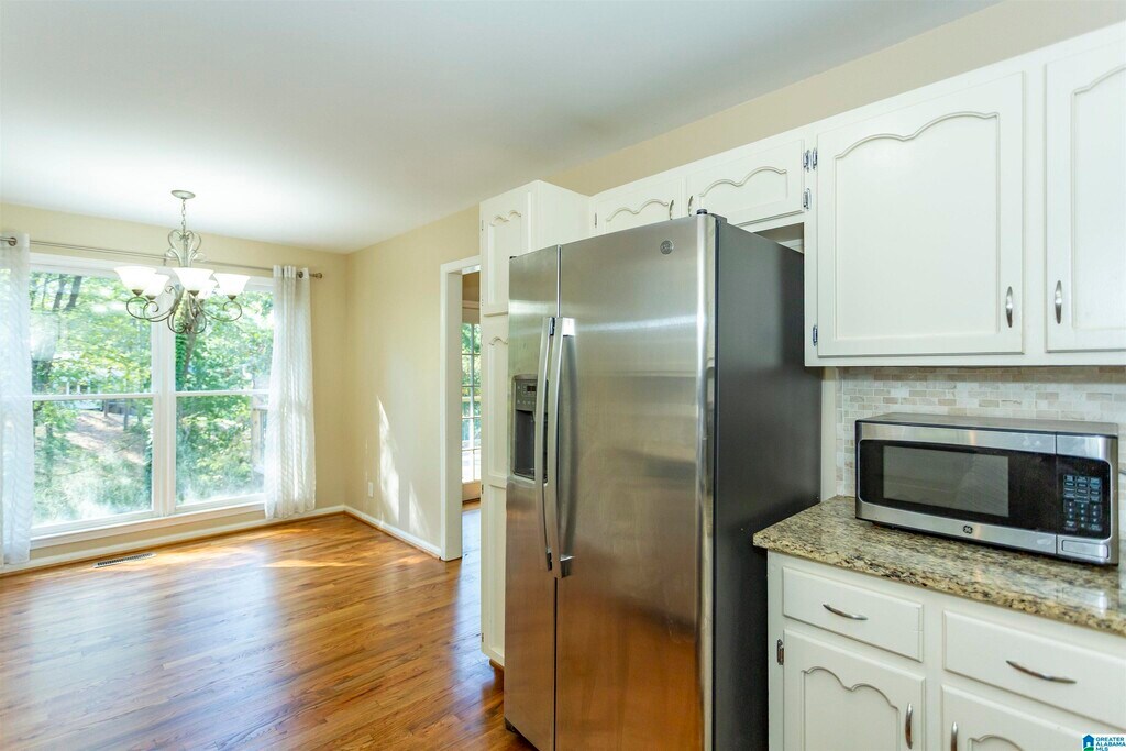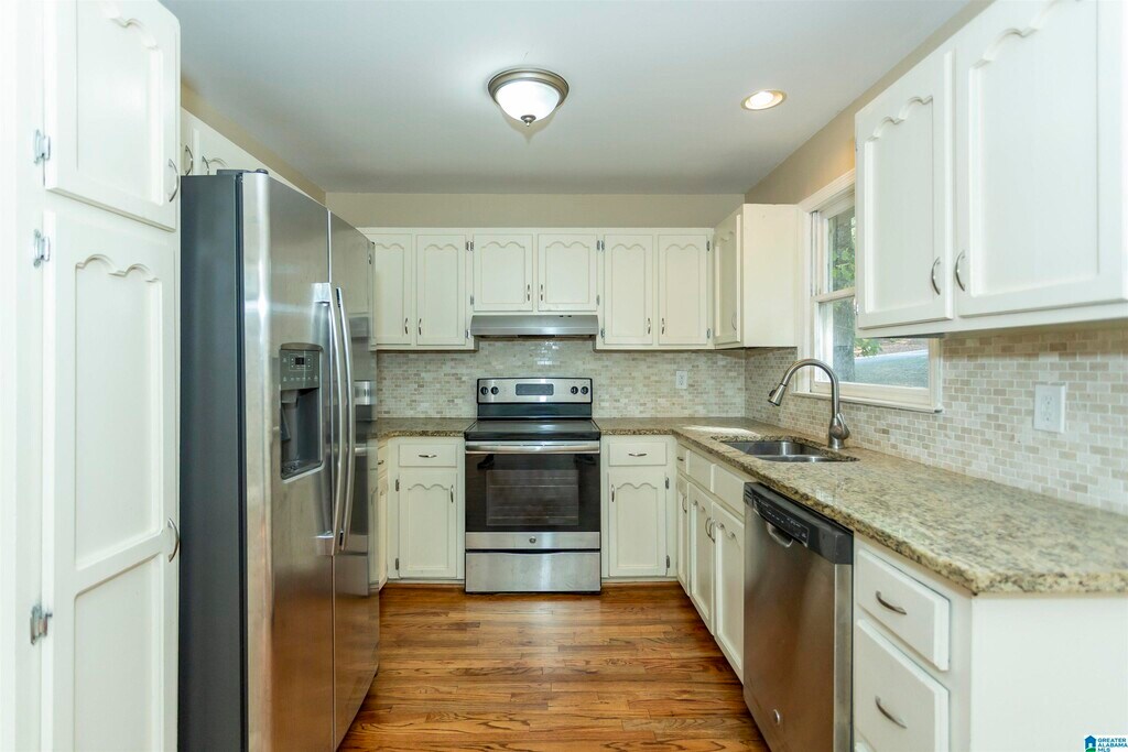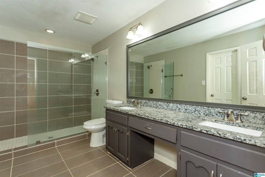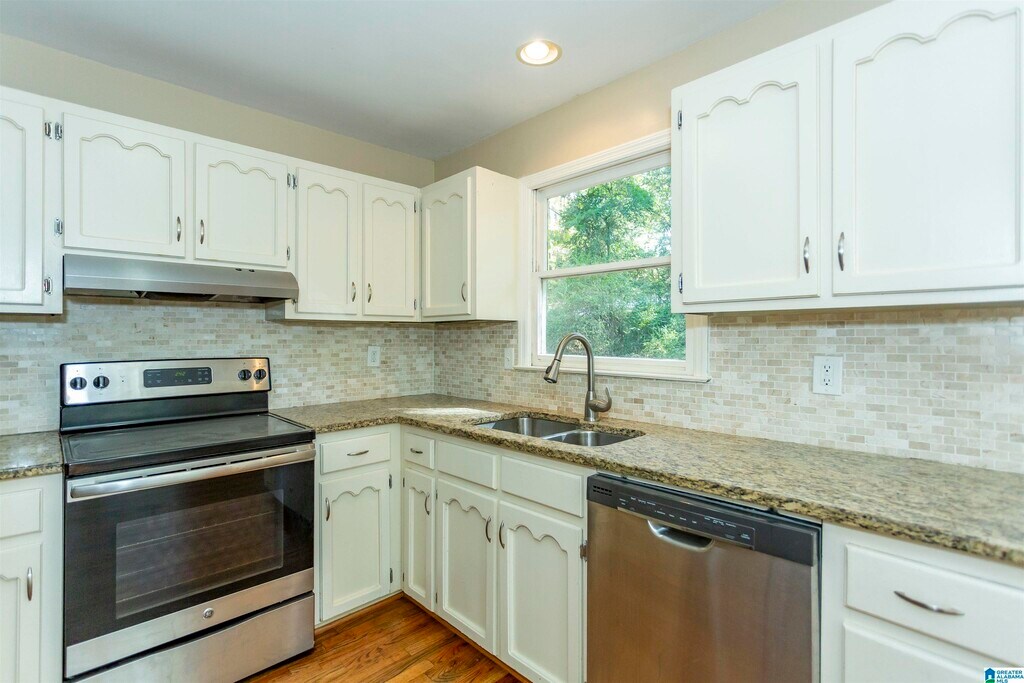 Nestled on a desirable corner lot, this lovely home offers easy access to top-rated Oak Mountain schools, interstates, shopping and dining. Inside, enjoy a bright living room and den with a beautiful stacked-stone fireplace, original hardwood floors, and abundant natural light. A new, spacious deck is perfect for outdoor meals and gatherings. The kitchen features granite countertops, stainless steel appliances, and a cozy breakfast nook. The primary suite includes a private balcony, updated bath with granite, double shower, and generous walk-in closet. Two additional bedrooms and a full bath complete the main level. The finished daylight basement offers flexible space for a media or playroom, a large bedroom, full bath, laundry, and an oversized two-car garage with plenty of storage. The fenced backyard is shaded and peacefully landscaped—your own quiet retreat. Contact Faulkner Property Management today for a tour.
