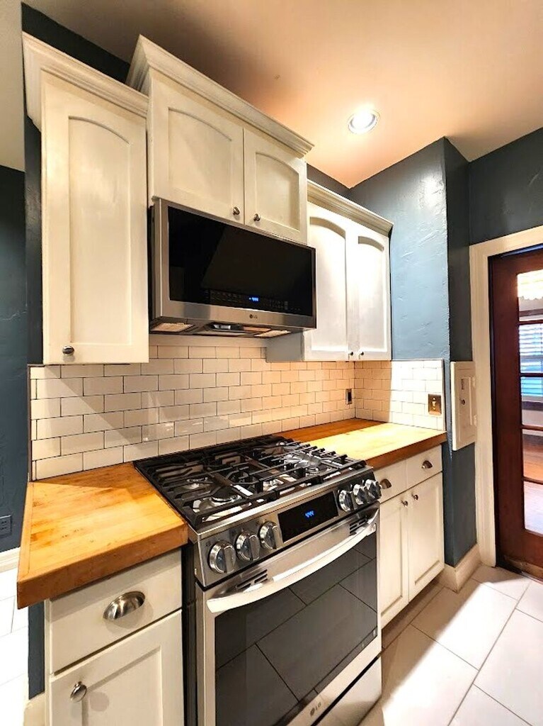 Welcome to this stunning 3-bedroom, 2.5-bathroom home located in the heart of Oklahoma City, OK in the much desired Gatewood Historical District. The Shaker Box style home comes with beautiful wood floors and French doors through out add a touch of elegance. The kitchen boasts a range of high-quality amenities, including a dishwasher, stainless steel refrigerator, and a wine storage area for the wine enthusiasts. The kitchen is a chef's dream with a built-in microwave, subway tile, granite countertops, butcher block counters and a 5-burner gas stove. The home also features a mock fireplace with mantel, perfect for cozy evenings. The property includes two Florida rooms, one can be an office and the other is perfect for lounging or a nice work out space. The covered carport and ADU garage with half bath offer ample parking and storage space. The home also includes an interior laundry connection for convenience. The basement is a nice safety zone with any inclement weather. The property is pet-friendly with a monthly pet rent and a non-refundable pet fee. The home also features a soaking tub, plantation shutters, and a grill for outdoor cooking. The potted plants and planters add a touch of greenery to the home. The backyard is a nice space for family cookouts and leisure. This home is a perfect blend of style and comfort. Call for your tour today!