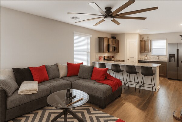 This inviting home offers 1,287 sq. ft. of thoughtfully designed living space featuring 3 bedrooms and 2.5 bathrooms. The open layout includes a spacious living and family room, a gourmet U-shaped kitchen ideal for entertaining, and a versatile upstairs landing perfect for a home office or additional lounge area. The primary suite overlooks the backyard, creating a peaceful retreat, while additional highlights include a utility room, pantry, welcoming front porch, fully fenced-in yard, and a 2-car garage. Appliances include a refrigerator, stove, dishwasher, microwave, washer, and dryer. Enjoy central heating and air conditioning for year-round comfort. Small pets are welcome with a pet fee. Tenant is responsible for all utilities and lawn care. Call 1- Minimum qualification requirements: Your household income must be 3 times the amount of rent-Proof of income will be required-No past evictions. Managed by NCDG Realty & Property Management.