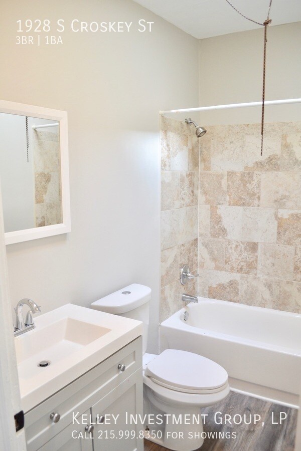 Call the number shown to schedule a showing. Lovely 3-bed, 1 bath home with front porch. Fully Renovated! There's a new kitchen, including granite countertops and new appliances, dishwasher and garbage disposal. Bar seating with two barstools included! There's also a new bathroom and beautiful floors throughout. All bedrooms have good closet space. Washer and Dryer included! New windows throughout. There's a nice fenced patio! Available immediately! Near the Schuylkill Expressway, Broad Street Line and the following bus lines: 7, 17, 29 and 79! First month, last month and one month security deposit due prior to move-in. Tenant pays all utilities, including water.