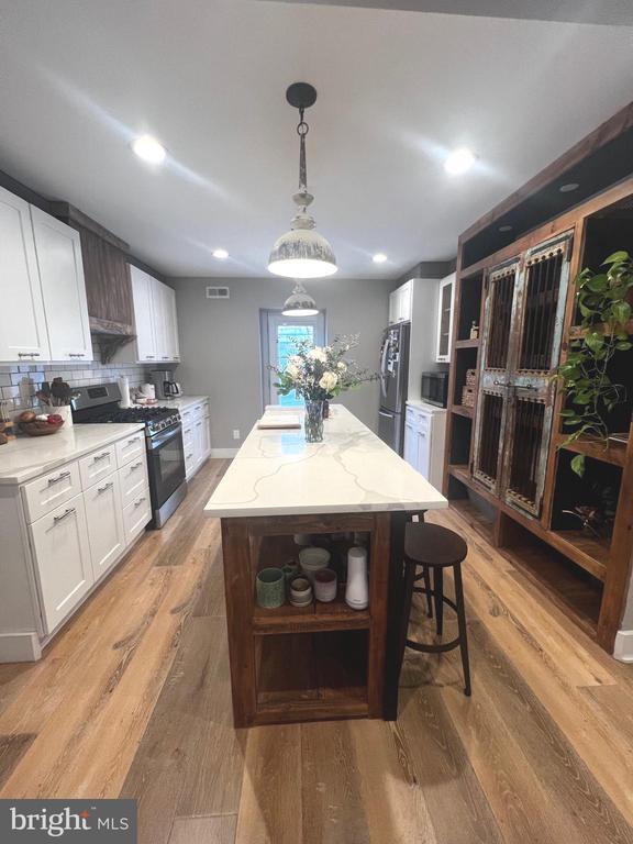 LOCATION! Welcome to 1929 Dudley St., a beautifully designed two-story row home that truly stands out. From the moment you arrive, the freshly updated exterior offers clean, modern curb appeal that draws you inside. Step through the front door and you're greeted by a cozy whitewashed brick accent wall, durable LVP wood flooring, and a spacious open layout highlighted by a sleek, contemporary staircase. The updated kitchen is both stylish and functional, featuring generous cabinet and countertop space, a center island with bar seating, newer appliances, and built-in wall shelving ideal for storage and display. Upstairs, you'll find two comfortable bedrooms and two full bathrooms, each bedroom offering natural light and ample closet space. The bathrooms showcase modern finishes, stand-up showers, and well-sized vanities. The finished basement adds valuable bonus space, complete with bike and overflow storage, a washer and dryer, and convenient exterior access. Enjoy living just steps from popular local dining spots and only minutes from Passyunk Avenue's vibrant mix of restaurants and shops. With easy access to public transportation and South Broad Street, commuting is a breeze. Come experience this inviting, stylish home for yourself!