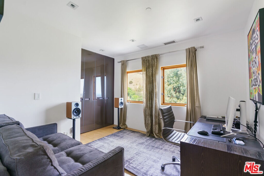 Architectural Stunner with Breath taking Views in the Iconic Hollywood Hills Live above it all in this fully furnished, move-in-ready retreat nestled in the coveted Hollywood Hills just steps from Runyon Canyon and Wattles Garden Park. With panoramic city and mountain views, this striking architectural home offers the perfect blend of luxury, privacy, and vibrant LA living. Freshly upgraded in Spring 2025, the residence features brand-new windows, polished concrete floors, refinished hardwood in the main suite, fresh paint inside and out, and a comprehensive deep clean throughout just bring your toothbrush!Inside, enjoy two expansive primary suites with spa-style bathrooms. The main suite boasts a walk-in closet, free standing soaking tub, and private patio with direct access to the backyard hot tub. The second suite includes dual closets, a renovated shower, and its own private entrance to the spa area.The main level is designed for entertaining, with two sunlit living rooms, an open-concept kitchen with pantry, a formal dining area, guest powder room, and a large patio ideal for al fresco dining or sunset lounging.The lower level features a private home theater with bar, a flexible bonus room for a gym, office, or play room, full bath, laundry, and a separate guest suite with its own bathroom ideal for extended guests or a creative workspace. With a three-car garage and additional driveway parking, this home delivers both style and convenience. Experience indoor-outdoor California living at its best, just minutes from hiking, nightlife, and the heart of the city. MLS# 25591463