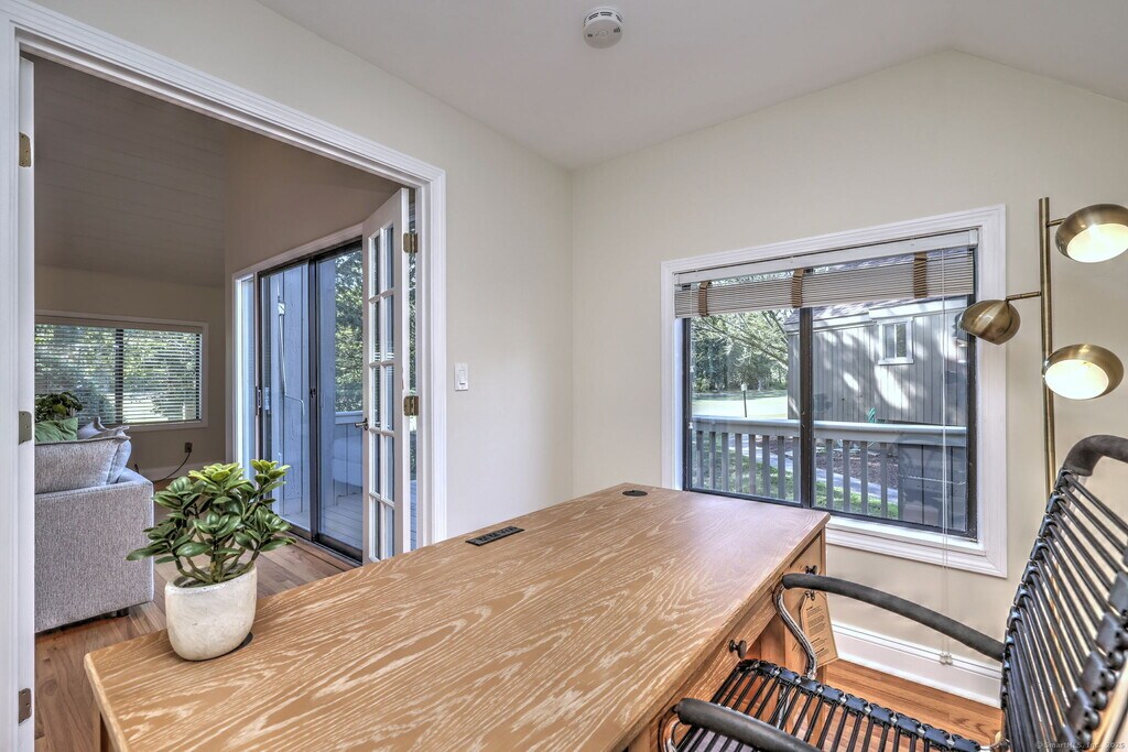 Sue VarroneWelcome to the Whittier Unit, the largest model in Oronoque Village, beautifully renovated from top to bottom and perfectly positioned to capture sweeping views of the Blackhawk Golf Course. With its open layout and thoughtfully designed spaces, this home offers a warm and inviting atmosphere for everyday living and entertaining. The main level features vaulted ceilings, hardwood flooring, and a spacious living and dining area with a gas-log fireplace-ideal for relaxing or hosting guests. Sliding glass doors open to a private deck with a retractable awning, where you can enjoy morning coffee or evening sunsets overlooking the fairways. Just off the living room, a versatile Home Office/Den or Flex Room provides a quiet space for work, reading, or hobbies. The updated kitchen includes expansive quartz countertops, stainless steel appliances, and sleek new cabinetry with plenty of storage. The primary bedroom suite includes a walk-in closet and private bath. A second bedroom and full hall bath offer comfort for guests. The finished walk out lower level features easy-care luxury vinyl plank flooring, a large family or recreation room, laundry area, half bath, extra storage, and direct access to the garage. Enjoy all the amenities of this vibrant 55+ community, including three swimming pools, tennis, pickleball, and bocce courts, clubhouse with gym and library, and a full calendar of social events. This move-in ready home offers a peaceful setting with beautiful golf course views.