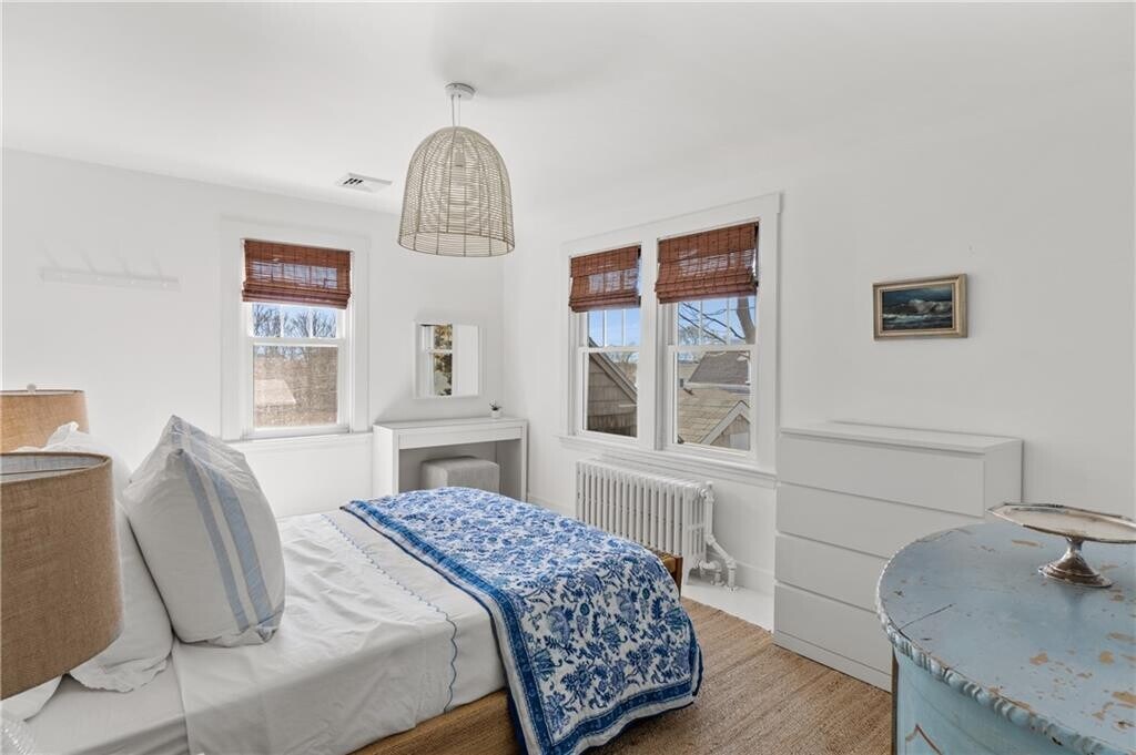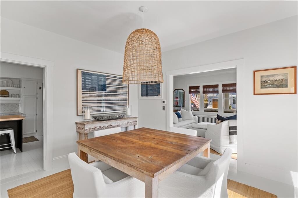 Available AUGUST 2026: Stylish & chic fully furnished beach cottage with a crisp white interior complemented by creative,natural textures throughout,this wonderful home is minutes from Bailey's Beach and Ocean Drive and a quick bike ride to downtown Newport. The main level features a sun-drenched living room with gas fireplace which is adjacent to a sleek dining room and a newly renovated full bath with shower. Also on the first floor is the delightful eat-in kitchen with new marble counter tops with all new high end appliances- which leads out to a picturesque back deck with a dining table for meals al fresco. Upstairs are three dreamy white bedrooms- all beautifully decorated with a fresh,sophisticated beach vibe,as well as a classic full bath. With a relatively new efficient gas heating system,central AC,young appliances and stunning décor,you will absolutely enjoy your stay in Newport!