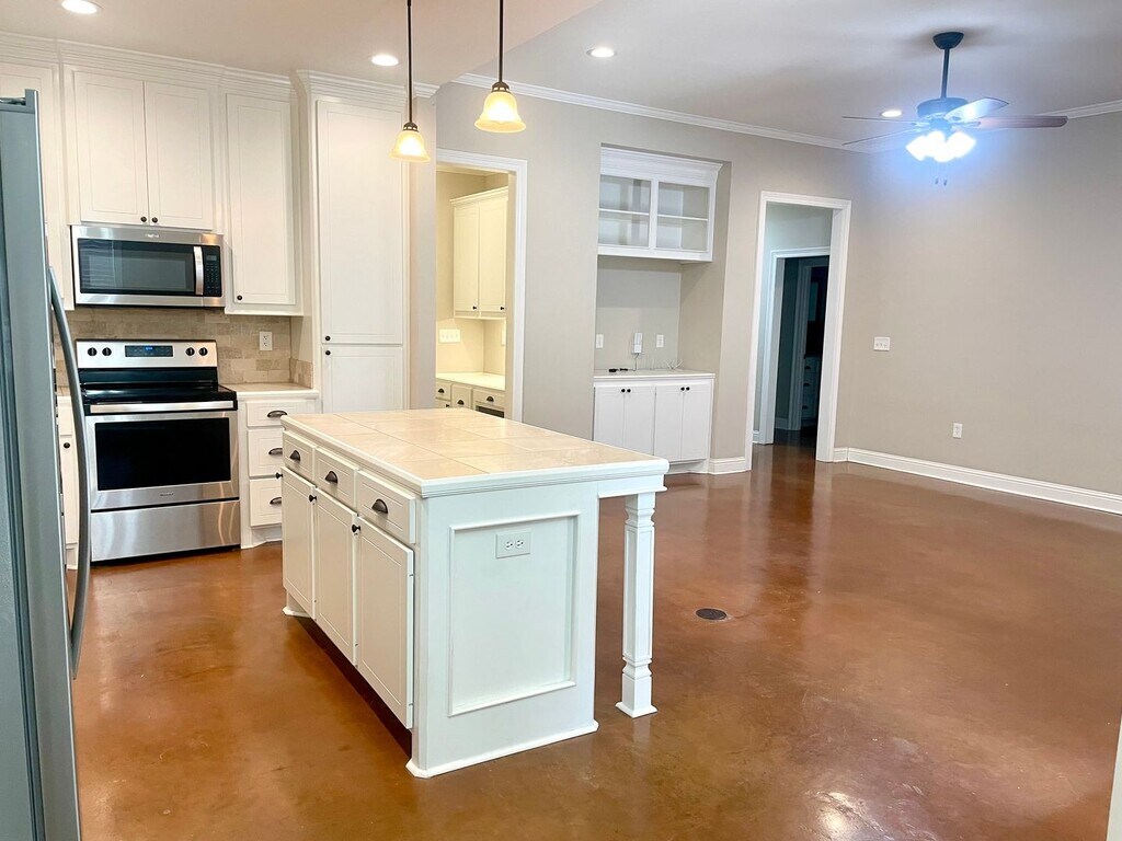 Welcome to 193 Woodland Dr in Brandon, MS! This home is ready for new tenants in September. Boasting comfort and convenience, this home truly has everything you need. Conveniently located off of W Gov. St just a minute from the historic downtown Brandon square where you can enjoy shopping, dining, and entertainment options! Getting the kids to school will be a breeze, as this home is located 5 minutes from Brandon Middle, and 8 minutes from Brandon High School. Commuting to work? Quick access to the interstate truly makes the location of this home a Can't Miss! The home features a split floor plan with stained concrete flooring throughout. The living area features built in cabinets and shelving for extra storage space. In the kitchen, you'll find stainless steel appliances, a kitchen island to add additional counter space, and a dining area. The primary bedroom features built in cabinets and shelving in the entryway and the primary bath has a double vanity, separate bathtub/shower, and a large walk-in closet. The home features a large fully-fenced in, beautiful backyard and a storage shed! Off of the kitchen, there is a spacious laundry room with a washer/dryer and built in shelving and cabinets leading out to the garage. The garage is a spacious 2-car garage! Rent will be $1975 with a security deposit of $1975. **An application must be submitted to Trihelm's website in order to schedule a showing. Once you have submitted your application, a leasing agent will reach out to schedule a showing as soon as possible!** Make this house your home today, you don't want to miss it!