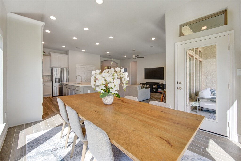 This beautiful single story home offers 4 bedrooms,3.5 bathrooms,and a thoughtfully designed open concept layout ideal for modern living and entertaining. The kitchen seamlessly opens to the breakfast nook and spacious family room,featuring a wall of windows that fills the space with natural light and provides views of the covered patio.The luxurious primary suite includes an en suite bath with dual vanities,a freestanding soaking tub,a separate glass enclosed shower,and a walk in closet. Three secondary bedrooms are well appointed,including one with its own private bathroom. Additional highlights include a versatile gameroom/flex space,a dedicated office,& 2 car garage with extened flex space. Included in the rental: Refrigerator,lawn maintenance,& pest control. MLS# 2158407