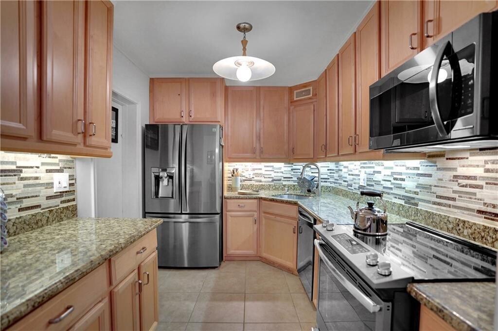 A rare find in Manor Grove Village (4)! This updated 2 bedroom - 2 bathroom unit is substantially remodeled. Newer kitchen with custom cabinetry,beautiful granite counters,brand new black SS appliances & stunning backsplash. Hurricane Impact Windows/Doors + brand new Hot Water Tank + newer A/C + new Plantation Shutters + Crown Molding + updated screened-in patio. There are pull down shutters for the patio. All real hard wood flooring throughout the living room and bedrooms. Parking space #24 right out the patio door for easy access to enter your home without walking through the hallway. Communal Laundry on each floor. MLS ID F10522746