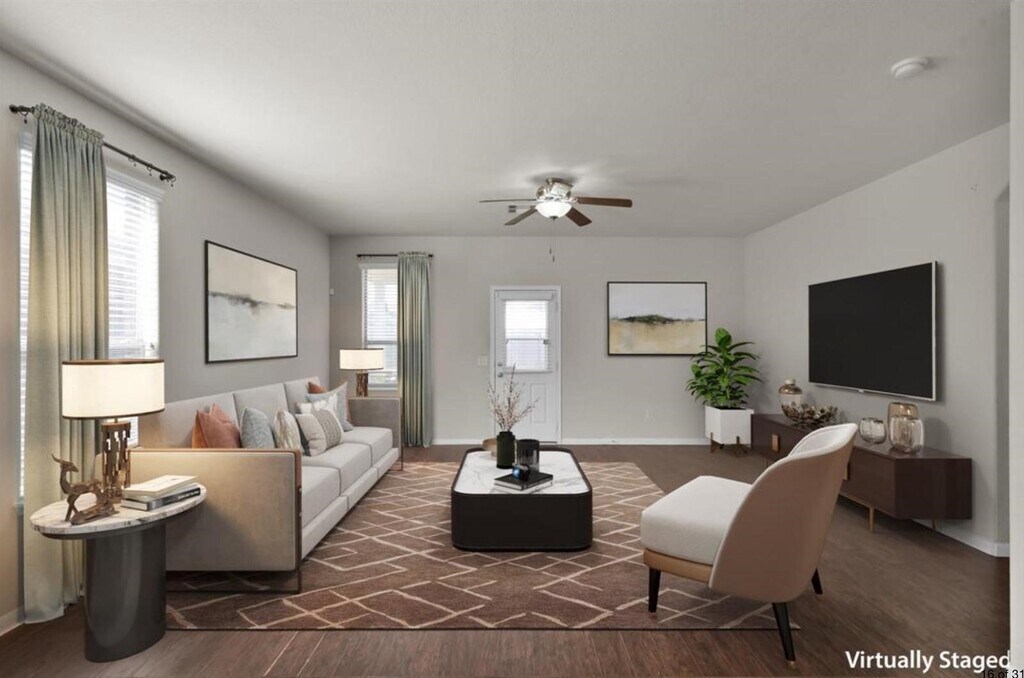 Enjoy the comfort of this modern one-story home featuring 3 spacious bedrooms,2 full bathrooms. The open floor plan creates an inviting flow between the living,dining,and kitchen areas,all filled with natural light. Fresh paint and tasteful finishes make the home feel brand new,while the private primary suite offers a relaxing retreat. Secondary bedrooms are generously sized,perfect for family,guests,or hobbies. The home is just minutes from schools,parks,shopping,and provides easy access to Highway 290 for a quick commute. Flooring includes hardwood/laminate,tile. electric/gas dryers; installed appliances: gas range,oven,microwave,dishwasher,and disposal. Outside features include covered front and back porches,a fenced yard with a swingset (included),and a two-car attached garage with a double-wide driveway. Home is on public water/sewer with central gas heat and electric cooling. MLS# 81348288