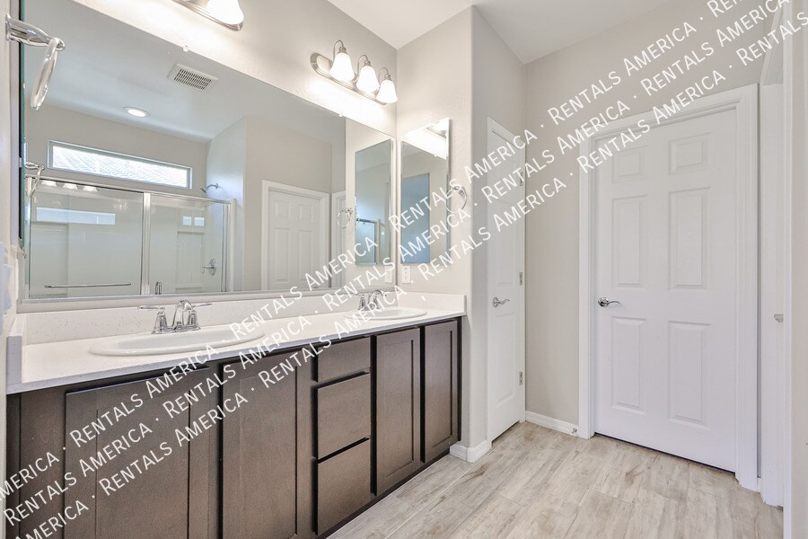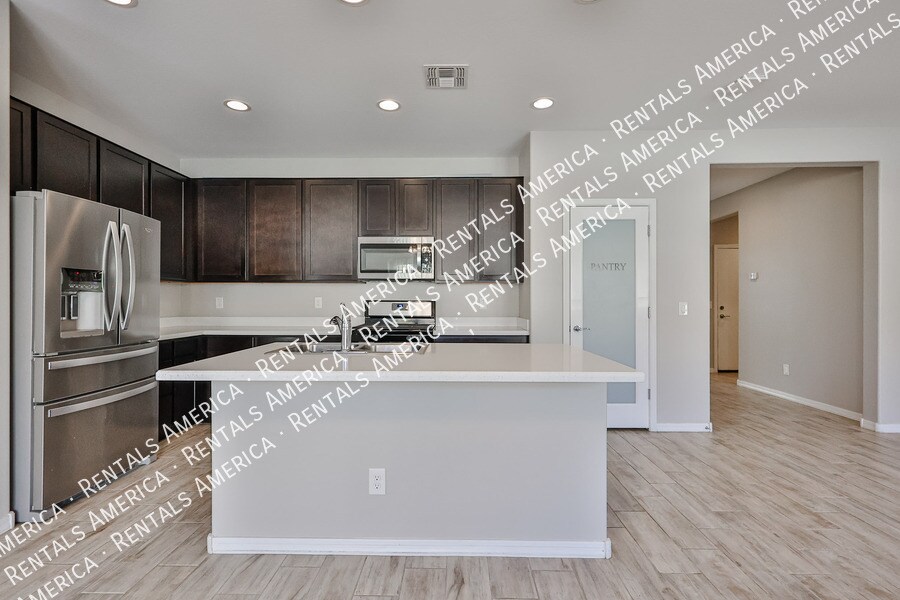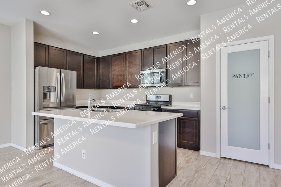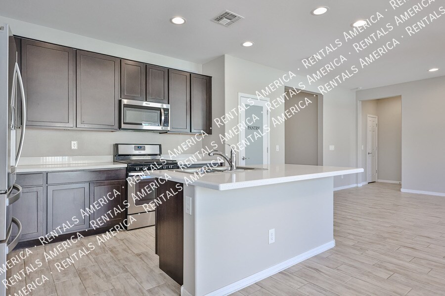2 WEEKS FREE RENT WITH AN APPROVED APPLICATION! This is a well kept, spacious 3 bedroom home. Open floor plan with ceramic tile and neutral carpet in the bedrooms. The kitchen is complete with granite countertops, stainless steel appliances, a pantry, and an island. The breakfast nook has a sliding glass door that leads out to your covered patio and enclosed back yard. All appliances included! Rock front and backyard for easy landscaping maintenance. Close to schools, shopping, and easy access to the 10. Pets considered with approved application. One Time Admin Fee: $300, Pet Deposit: $300/pet (if applicable), Service Fee: 2%. $39/month Resident Benefits Package, Helping Heroes Discount Available! Carpet Ceramic Tile Disposal Dryer Garage Pets Allowed Washer
