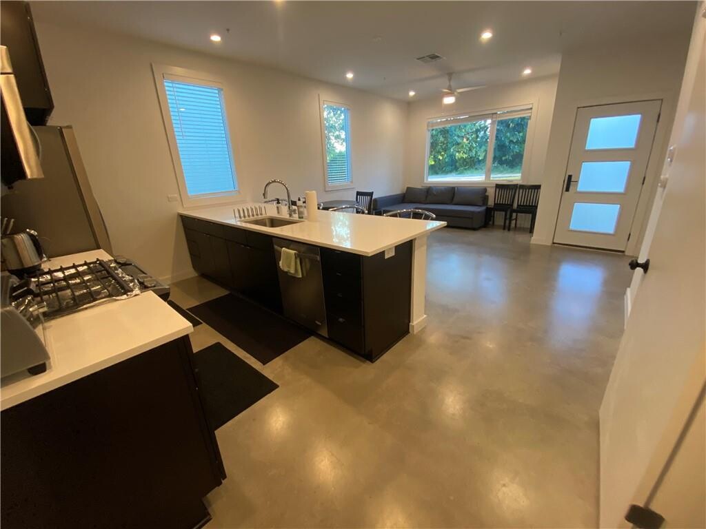 Modern 2 Story Luxury Condo Designed for simplicity w/contemporary finishes & Lots of Light. Features stylish 2bed/2.5ba w/office nook+2 car attached garage. Tankless water heater, open kitchen & floor plan, MetroQuartz countertops, premium SS appliances, wood & polished concrete floors, Mirabelle soaking tub,spacious frameless showers & more. Across from Mueller park hike/bike trail & mins to UT & DTWN. Cherrywood area. Close to UT, Dell Seton Medical Center, Capitol Complex, Museums, Restaurants, & Hot Spots. A quick drive will get you to Downtown, ABIA Airport, and all that Austin has to offer. Your relaxation getaway awaits. Make It Yours! Short term lease of min 6 months available