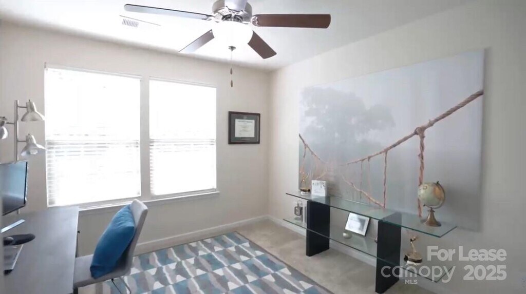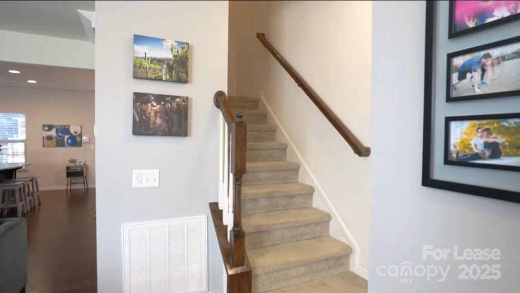Welcome to this modern and spacious 3-bedroom,2.5-bath townhome in the highly sought-after Bryant Park community on Charlotte’s vibrant West Side—just minutes from Uptown. The open-concept main level features rich dark hardwood floors,a bright living area,and a large kitchen designed for entertaining with granite countertops,an oversized island,and a breakfast bar. A 70" mounted TV is included in the living room for tenant use. Upstairs,the primary suite offers a true retreat with a ceiling fan,oversized walk-in closet,and spa-like bath with dual vanities,a glass-enclosed shower,and a linen closet. Guest bedrooms are nicely sized with large closets and ceiling fans,sharing a spacious full bath. Situated on a quiet street,this home features a private backyard backing to a wooded area and is just a short walk to the community gazebo. Enjoy low-maintenance living with lawn care included,plus easy access to shops,dining,major highways,and Uptown!