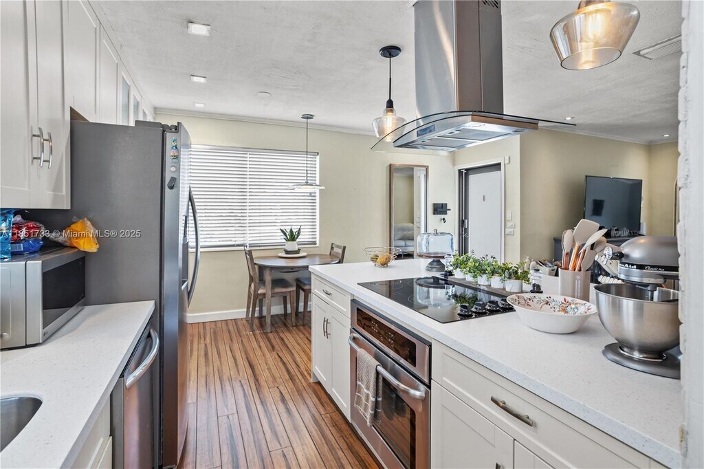 This completely remodeled, no-HOA Three-bedroom home near Whispering Pines features an open layout, white quartz kitchen with island, bamboo flooring, one bathroom, Large fenced yard with newly installed deck, shed, boat slip, and a mango tree. No HOA. Roof 2022 2024 impact windows,2023 HVAC, Plumbing Throughout house done in 2015