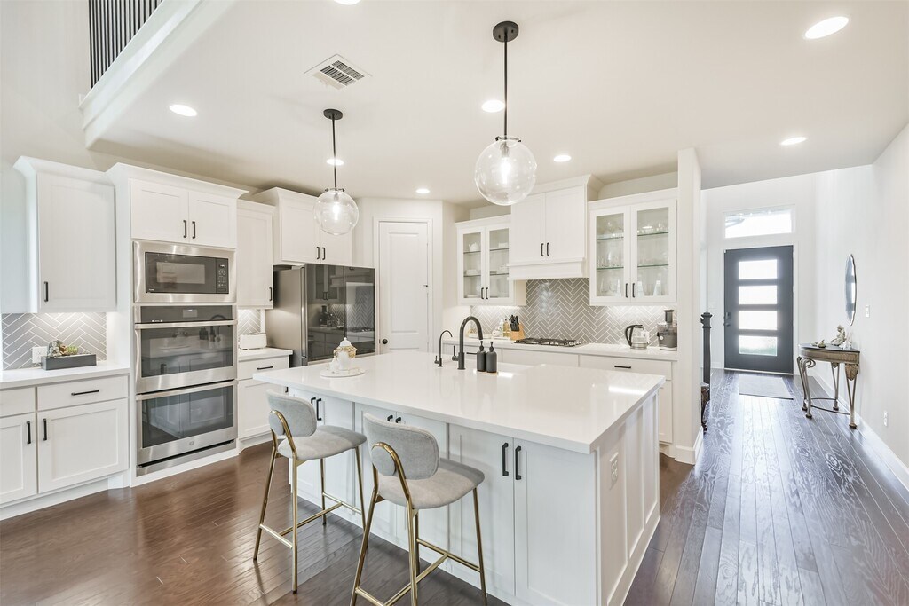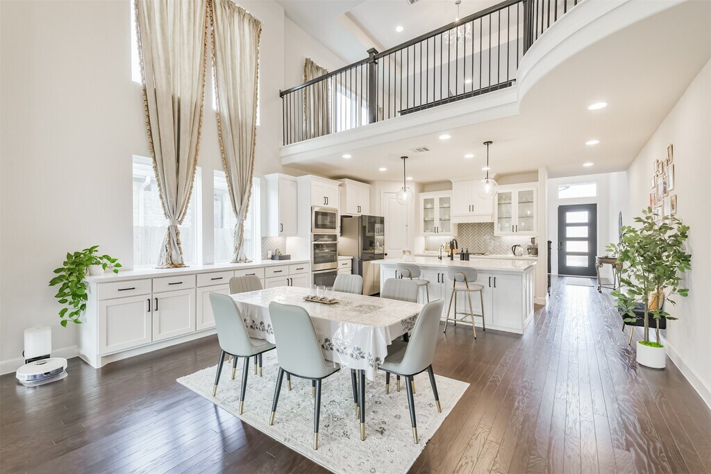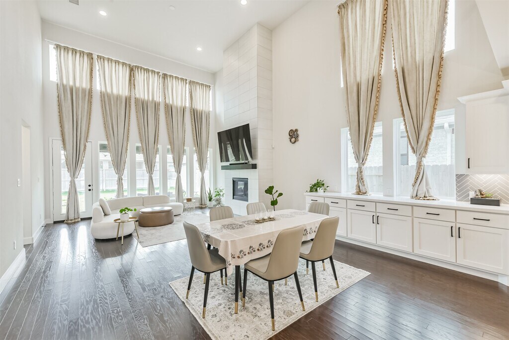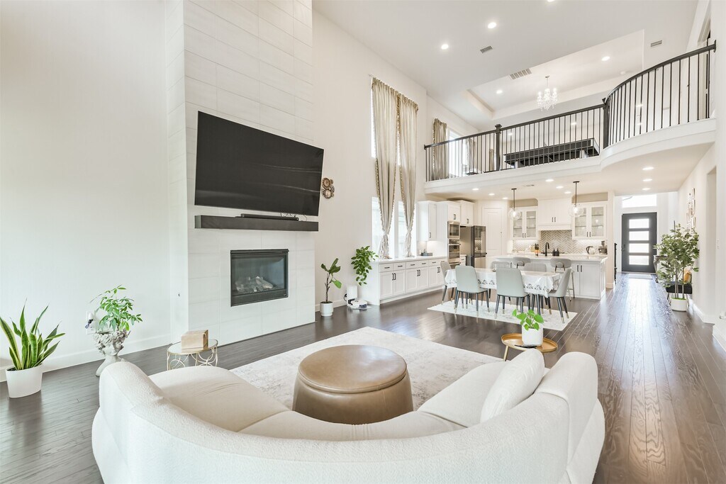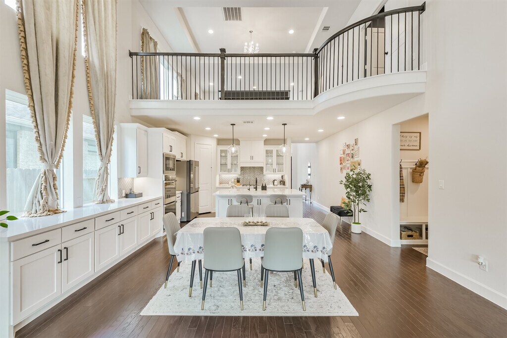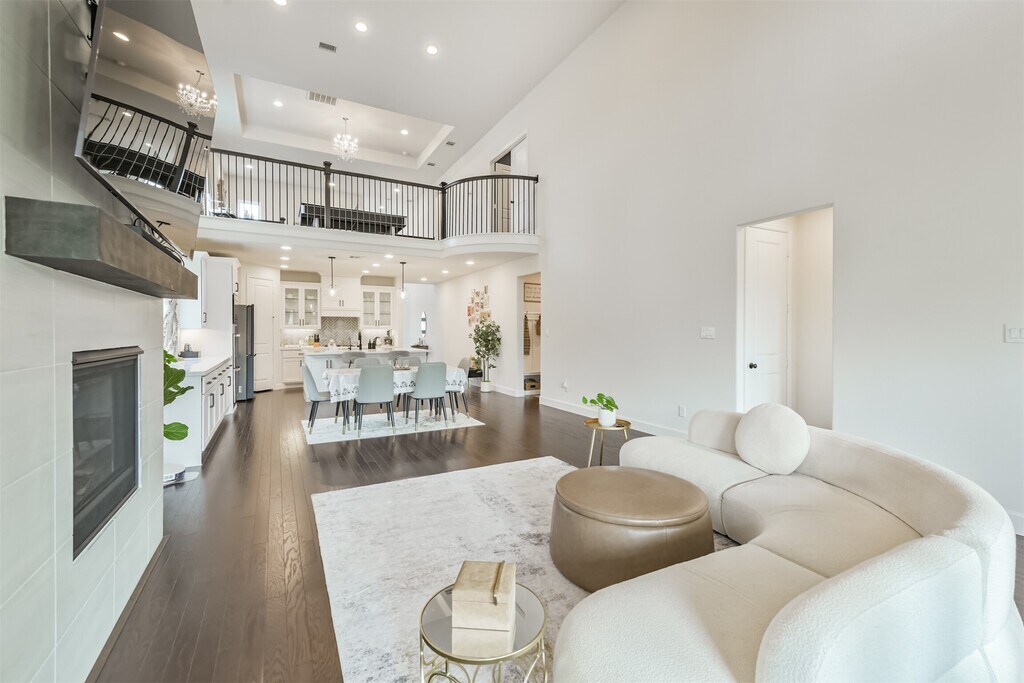 This beautiful 2 story,4 bedroom,3.5 bath,3 car tandem garage home in Amira has ample space for family activities,both inside and out. A home office directly off the entry with its extra high ceiling provides an airy private work spot. The two story living room with tile fireplace and walls of windows adjoins the dining room and kitchen,complete with double oven,quartz counters,extensive cabinets,island with breakfast bar,farmhouse sink,and undercabinet lighting. The primary suite includes double sinks,soaking tub,and separate shower. One secondary bedroom downstairs has its own private full bath. Upstairs,two more bedrooms,a game room,and a media room provide more options for friends and family. An extended covered porch and large backyard open opportunities for outdoor entertainment. Neighborhood amenities include a resort style pool,splash pad,fitness center,walking trails,lakes,and playgrounds. Don't pass this one up! MLS# 29501331