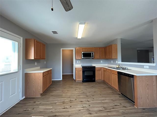 Beautifully maintained 3-bedroom, 2-bathroom home on a spacious corner lot in the highly desirable Harriet Creek community of Justin, TX. This move-in ready gem showcases an open-concept layout, perfect for everyday living and effortless entertaining. Modern paint tones and updated light fixtures create a bright, stylish, and welcoming atmosphere. The kitchen seamlessly connects to the dining and living areas, making it an ideal gathering place for family and friends. Enjoy a large backyard, perfect for summer barbecues, children’s play, or relaxing evenings under the stars. Additional features include a two-car garage, abundant natural light, and excellent curb appeal. Situated in Northwest ISD, this home offers quick access to I-35W, Tanger Outlets, shopping, dining, and entertainment—all while providing the peace and comfort of suburban living.