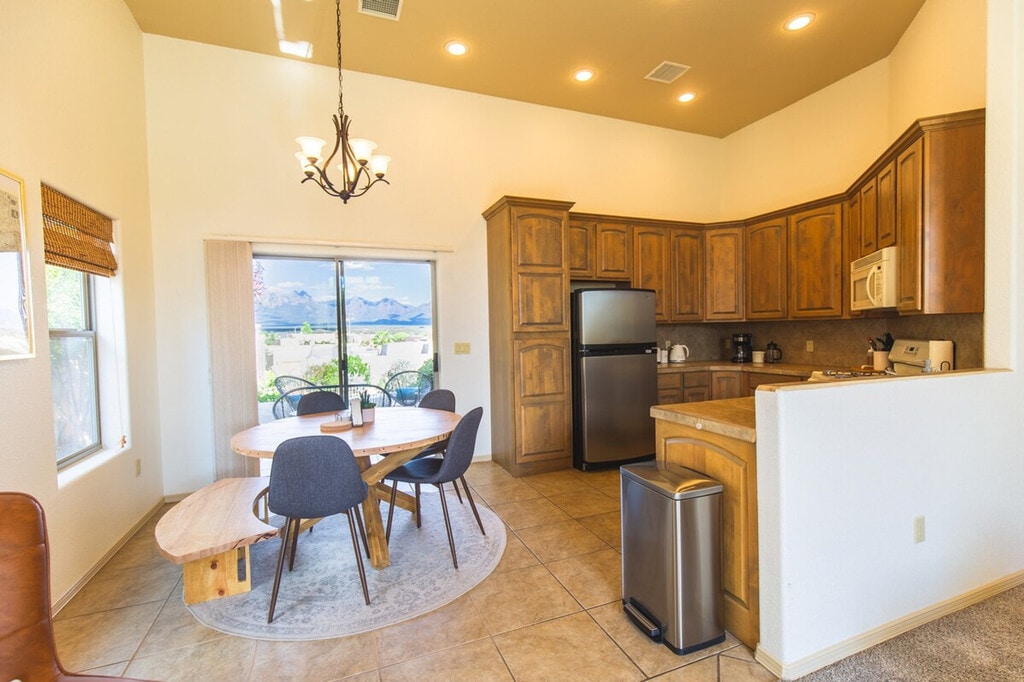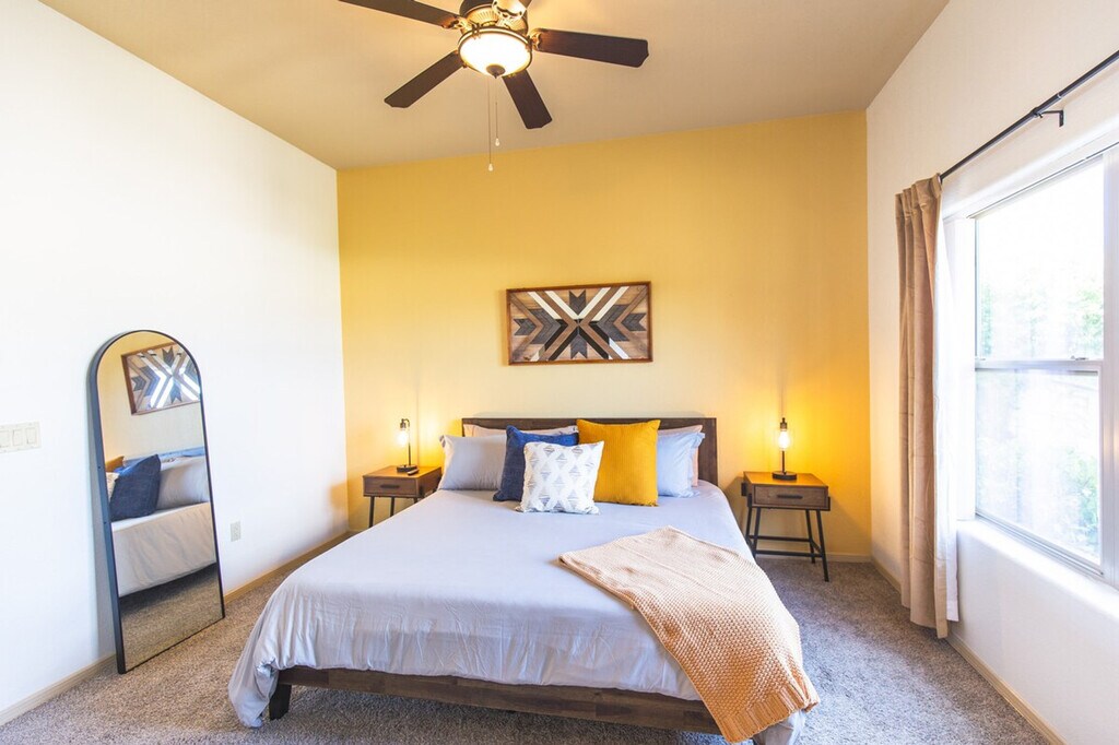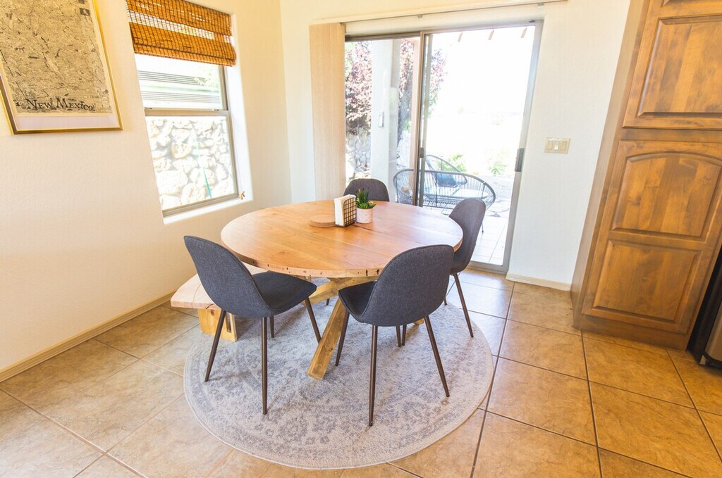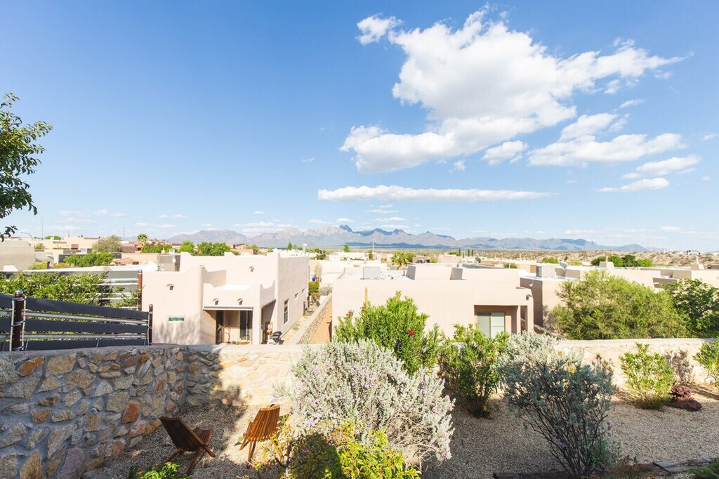 The advertised rate of $5,084/month is the lowest available price, based on a 30 day(s) stay with a move-in date of July 23, 2026. Rates vary depending on the duration of stay, season, and other parameters. For exact pricing and additional pricing components, please visit our website and enter your desired move-in and move-out dates. The rate is applicable when billed upfront; it can be higher if billed in multiple payments. Located in the quiet, upscale neighborhood of Sonoma Ranch, the Yucca House is a peaceful retreat with stunning views of the Organ Mountains. Feel at home in this thoughtfully designed 1,300 square foot home with 3-bedrooms and 2-bathrooms. The light-filled living room features a Samsung Frame TV that doubles as wall art when not in use, and views of the Organ Mountains. Yoga mats are provided. The primary suite features a king-size bed, views of the Organ Mountains, another Smart TV, and a jetted tub along with a walk-in shower. The second bedroom has a queen-size bed and closet, and the third bedroom features an elegant bunk bed. The backyard is perfect for lounging with Acapulco furniture, cushions and a grill/griddle. Enjoy coffee in the coffee nook at the end of a terraced yard. One dog under 30 lbs is allowed with a pet fee. Enjoy easy access to White Sands, Mesilla, Downtown, golf and all that Las Cruces has to offer. Perfect for work, vacation, and relaxing getaways. No parties or events are allowed, and quiet hours are from 10 pm to 6 am. All guests must be part of the reservation, and no outside guests are allowed without prior approval. Guests are kindly asked to not wear shoes inside. Includes a large writer's/work desk in the third bedroom. [SI]