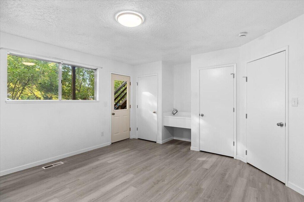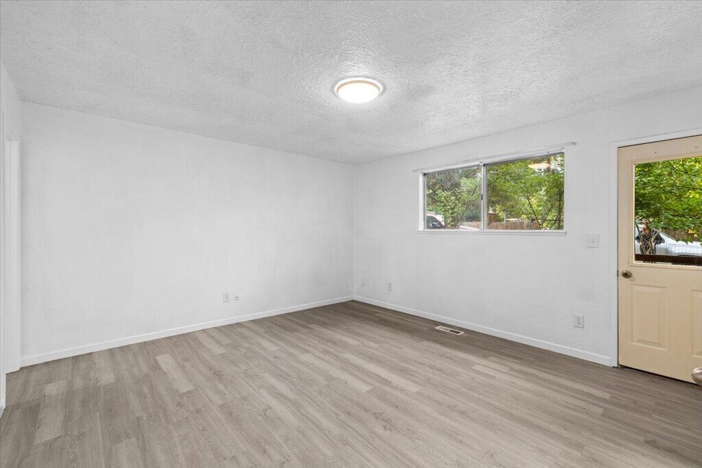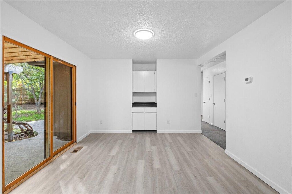 This updated 3 BD 2 BA home sits in the quiet Terra Linda neighborhood, just minutes from schools, shopping, and downtown Ashland. Surrounded by mature trees, it feels like a private, forested retreat. The foyer opens to a bright living room and dining area. The kitchen features new stainless appliances and connects to a convenient laundry room, W/D included. From there, you can access the attached 2 car garage with automatic door openers. Recent updates include fresh paint, lighting, luxury vinyl plank flooring, and new carpet throughout. The main level features 2 bdrms and 2 bathrooms, including a spacious primary suite w/ his-and-hers closets and an oversized jetted tub. A unique upstairs flex space, accessed by a private exterior staircase, provides excellent versatility - perfect for a studio, home office, guest room, or additional living area. Tenants are responsible for all utilities & trash. Twice monthly landscape service is included. No roommates. No cats. Dogs on approval.