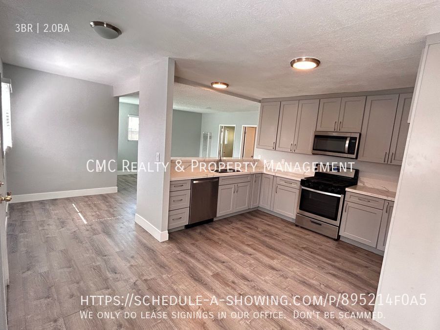 The house has/is: -3 bed/ 2 bath single family house. -New Plank vinyl flooring throughout -NEW Custom interior paint -Plenty of closet space -Wall Heaters -New Stainless steel gas Stove -New Shaker cabinets. -New Quartz counter top -New Kitchen sink and faucet. -Driveway parking -Washer and Dryer Hook ups. -$60 application fee per adult -Tenant pays all utilities. PLEASE BE AWARE OF RENTAL SCAMS: We caution all applicants to be careful in researching the legitimacy of any potential rental listings and perform appropriate due diligence. All deposits, rents and rental agreements should only be executed at CMC Realty & Property Management, . If you are being asked to meet someone with cash, or if you are being asked to send money via Western Union, Money-Gram, or Prepaid Visa card these are possible signs of rental listing scams used to defraud applicants. DRE License #01518510 PLEASE BE AWARE OF RENTAL SCAMS: We caution all applicants to be careful in researching the legitimacy of any potential rental listings and perform appropriate due diligence. All deposits, rents and rental agreements should only be executed at CMC Realty & Property Management, 5320 2nd St. Suite 11 Long Beach CA 90803. If you are being asked to meet someone with cash, or if you are being asked to send money via Western Union, Money-Gram, or Prepaid Visa card these are possible signs of rental listing scams used to defraud applicants. DRE License #01518510 RENTAL CRITERIA: 600+ FICO score 2.5X income vs. rent No evictions on record If you are approved to be one of our tenants, there is a mandatory "Tenant Resident's Package" of $49.00 to be paid monthly. Stainless Steel Dishwasher Stainless Steel Microwave Stainless Steel Stove Tenant Pays For All Utilities