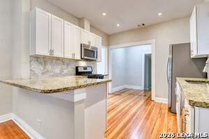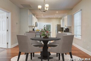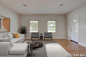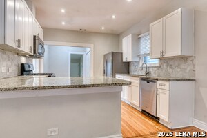 Beautifully updated 1 story home located in the historic Woodlawn Terrace area of Northwest San Antonio. This 3 bedroom, 2 bath home offers approximately 1,540 square feet with high ceilings, abundant natural light, and refinished original wood floors that add character throughout. The open floorplan connects the living and kitchen areas for comfortable everyday living. The kitchen features granite countertops, arabesque tile backsplash, updated white cabinets, gas cooking, and generous counter space. Both bathrooms have been updated with subway tile surrounds, modern sinks, fixtures, and mirrors for a clean and elegant finish. A long driveway provides ample parking and outdoor space for relaxing. Located near schools, Woodlawn Lake Park, shopping, dining, and major roadways with convenient access to Downtown San Antonio. Schedule your showing today and submit your application before this home is leased. Online App fee $75, 18 and over. App/fees are due at the time of application. We do not accept paper applications. Pet deposit is $300 per pet (subject to restrictions and approval). The owner will manage the home after move-in. All funds must be certified.