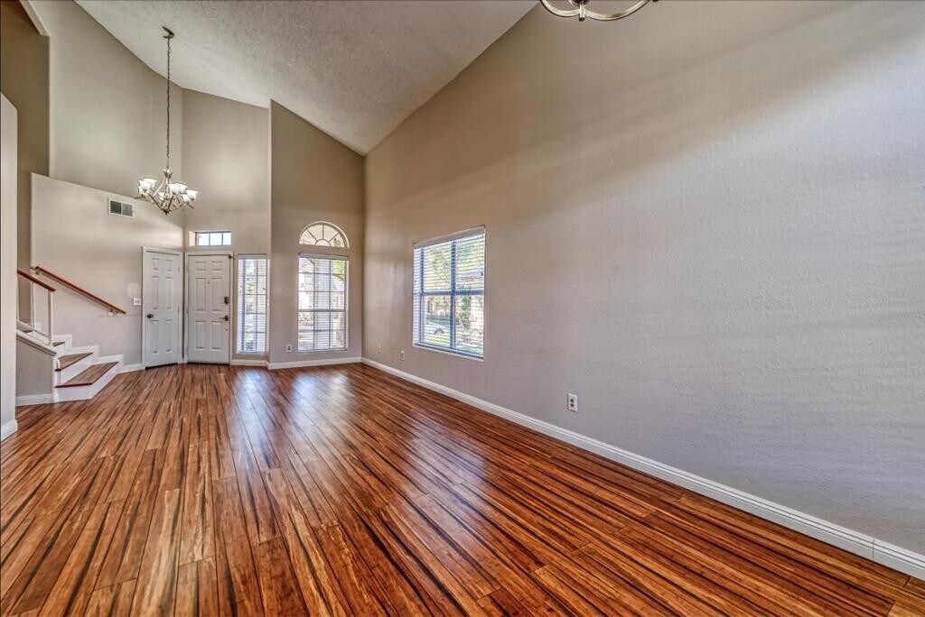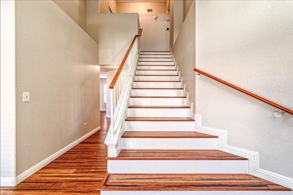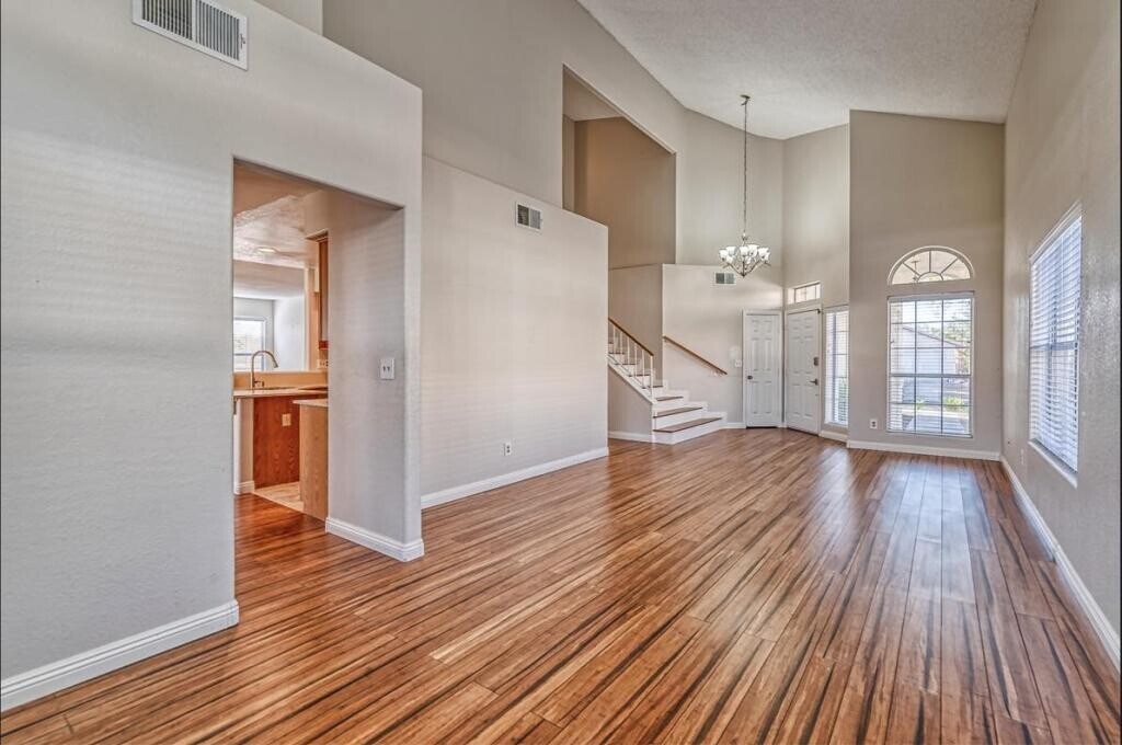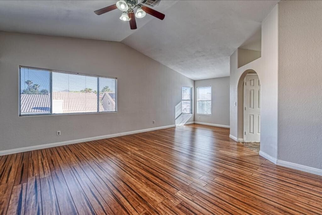 Stunning, 4 bedroom, 3 bathroom home, perfectly situated in a desirable Green Valley neighborhood. Step inside and be swept away by the vaulted ceilings and abundance of natural light flooding through the windows, while the cozy fireplace in the family room is sure to be a favorite spot for gathering with loved ones. The main floor offers a spacious bedroom and bathroom, ideal for guests or multigenerational living. Upstairs, you'll find three additional bedrooms including a primary suite with a walk-in closet and en-suite bathroom. Outside, enjoy the privacy of your own yard, perfect for entertaining or simply relaxing in the sunshine. With easy access to dinning, shopping, freeways, and a nearby golf course, this location truly has it all. Contact us today to schedule a tour.