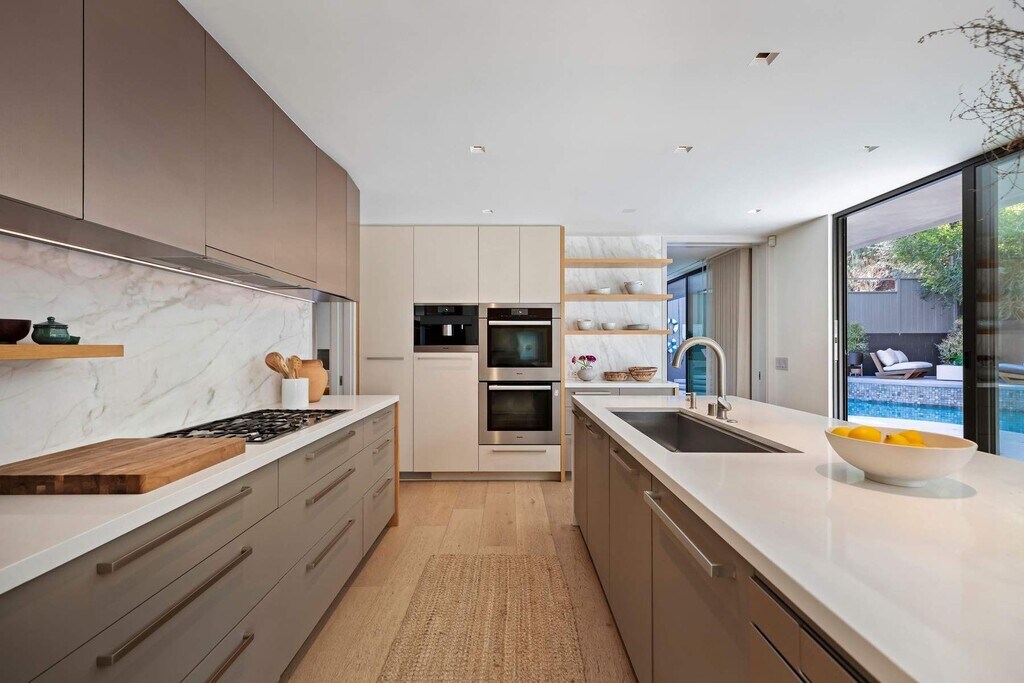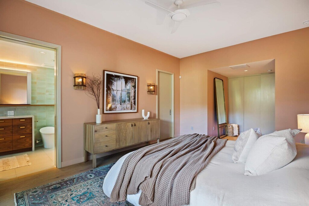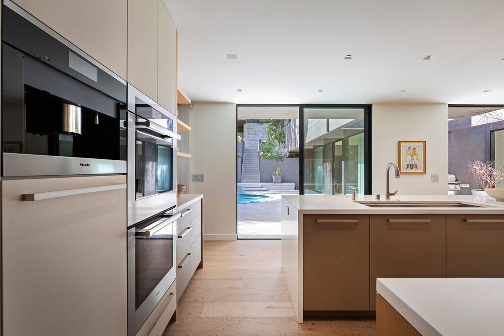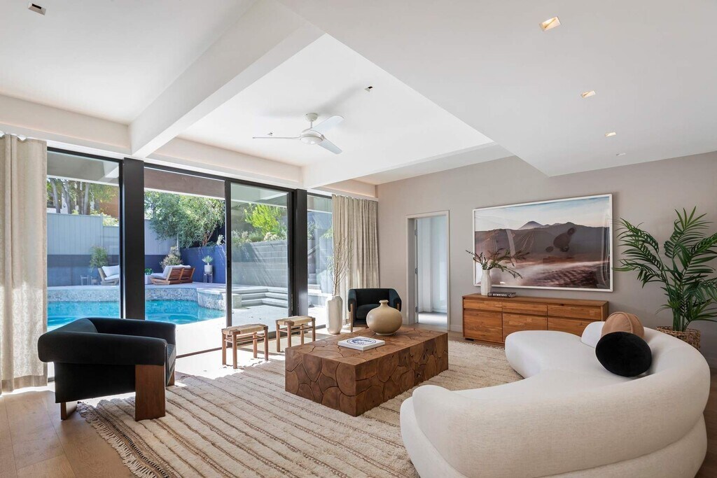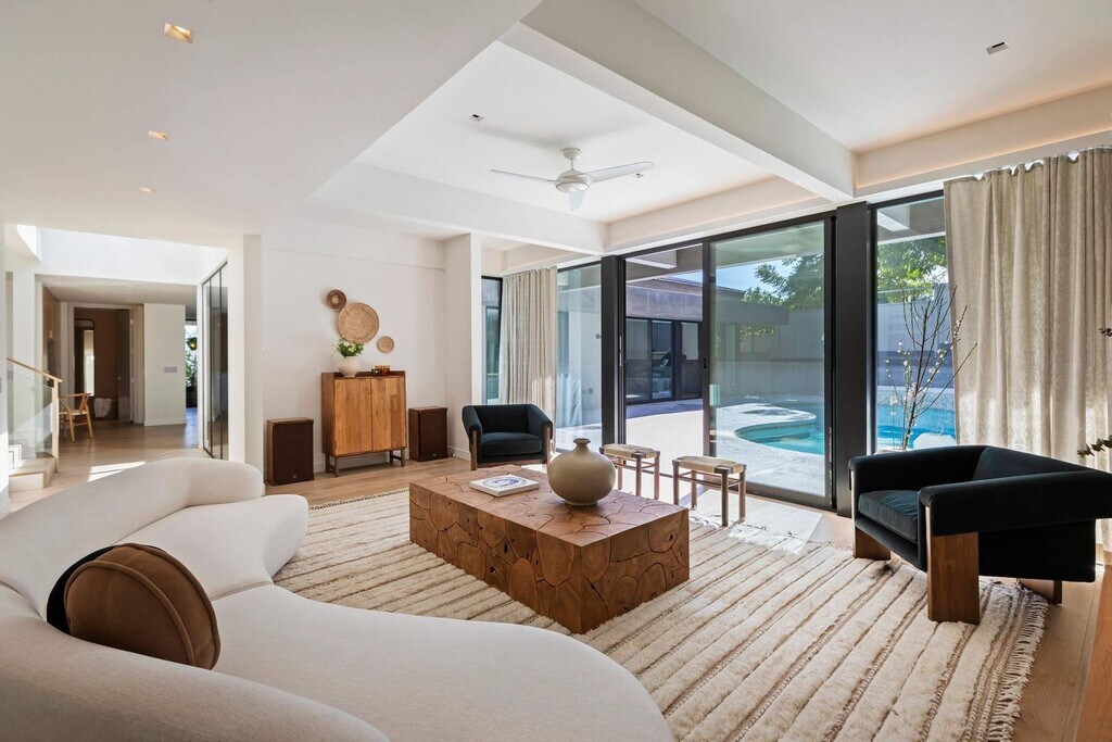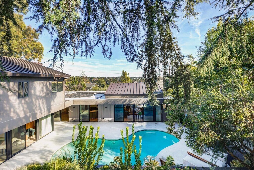 ULTIMATE PRIVACY with a two-story guesthouse at the heart of this 1969 Midcentury compound. 5 Beds, 6 Baths. Designed by noted architect Hai C. Tan - a serene, creative retreat woven into L.A.'s rich cultural fabric. Known for designing Chinatown's Mandarin Plaza. This 5,194-square-foot home crafts a beautiful blend of glass, wood, and metal with surrounding greenery, centered around a sculptural swimming pool. Sleek and effortlessly open, the home elevates indoor-outdoor living with soaring ceilings, sun-drenched spaces, and walls of glass that disappear into the landscape. The great room is perfect for music and entertaining, while the sunlit chef's kitchen - a nod to Danish modernism - offers a long, streamlined island with counter seating, a full complement of Miele appliances, wood cabinetry and open shelving. Other highlights include a media room, cozy lounges, and a flexible floor plan. The TWO-STORY guesthouse, perfect for visitors, private offices, or creative retreats, is secluded above terraced gardens, offers its own stylish living space and private patio, a breathtaking work of craftsmanship with a private entrance. Set in an artsy, eclectic neighborhood and redefining versatility, this home is more than a residence, it's a sanctuary for inspired living. Lease must be 13+ months. Rental Terms: Annual: $20,000 Per Month