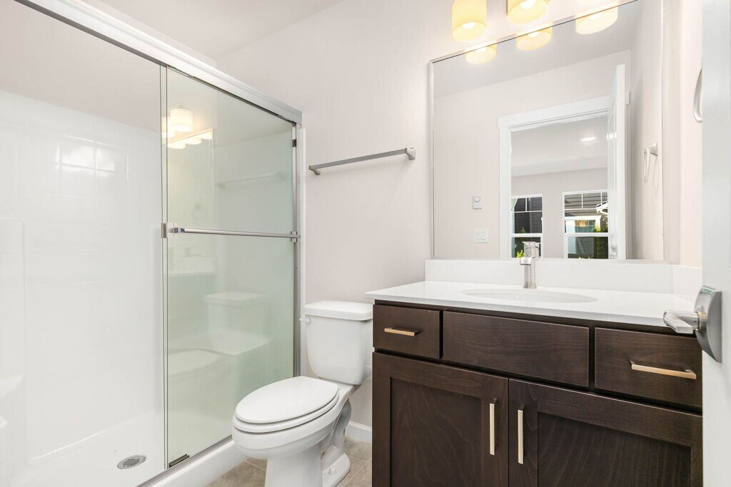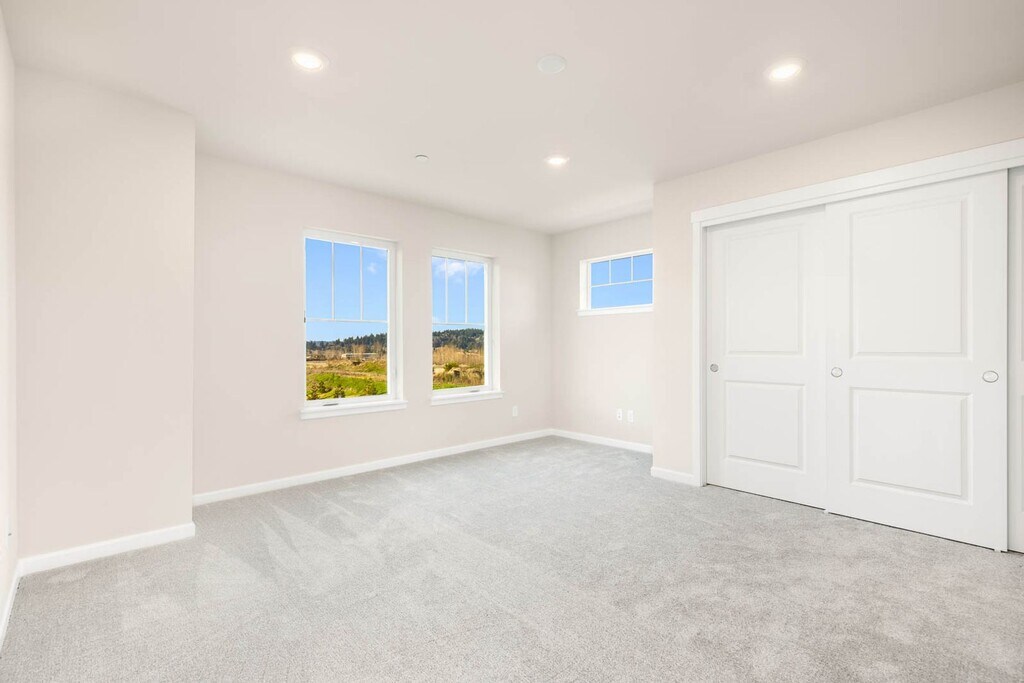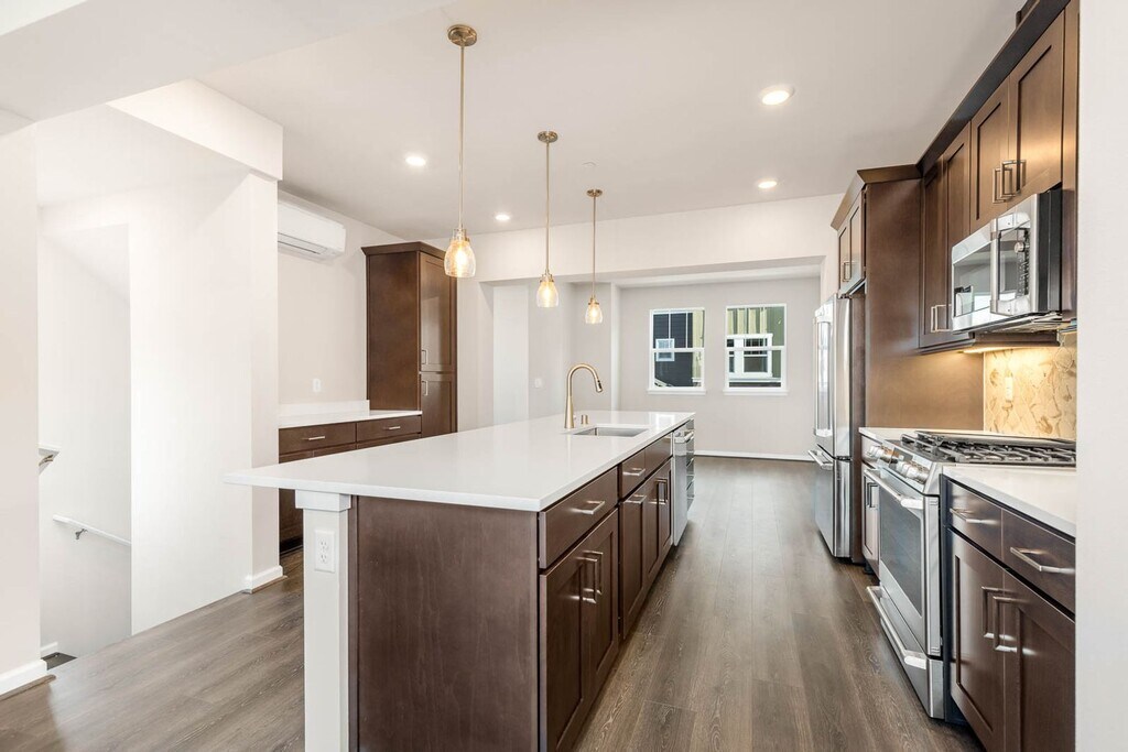 Step into modern elegance with this newly built, multi-level home featuring high-end finishes, a thoughtful layout, and abundant natural light throughout. Located in a highly sought-after neighborhood, this home is just 5 minutes from Costco, within the Lake Washington School District, and only 7 minutes from the light rail, making everyday living and commuting exceptionally convenient. The first floor offers a welcoming entry with a large window for natural light, a bedroom with vinyl flooring, a closet, and a private bathroom with a shower, as well as direct access to the garage, which also includes windows for additional light. The second floor features an open and airy living space with vinyl flooring throughout. The living room includes a fireplace, sliding window, and access to a balcony, creating an inviting indoor-outdoor feel. The kitchen is equipped with wood cabinetry, modern appliances, a large granite island, and a mini split for climate control. A secondary open area with windows provides flexible space for a dining room or additional living area. A half bathroom and stairway with a storage closet complete this level. The third floor is designed for comfort and privacy. The primary bedroom features carpeted flooring, a closet, great natural light, and a mini split system. The primary bathroom includes a double vanity, large mirror, and walk-in shower. This level also includes a secondary bedroom with carpet, closet, and good natural light, a full hallway bathroom with a bathtub, a carpeted open space, and a double-door laundry area conveniently located off the hallway. Additional carpeted stairs and hallway storage add even more functionality. With its modern finishes, spacious layout, energy-efficient mini splits, and unbeatable location, this home offers the perfect balance of comfort, style, and convenience. 12-month lease available; 16–24 month lease preferred. A 24 month lease will incur a $100 increase in the second year. Required Resident Benefit Program for an additional $36.50 per month. Program details and benefits can be found at