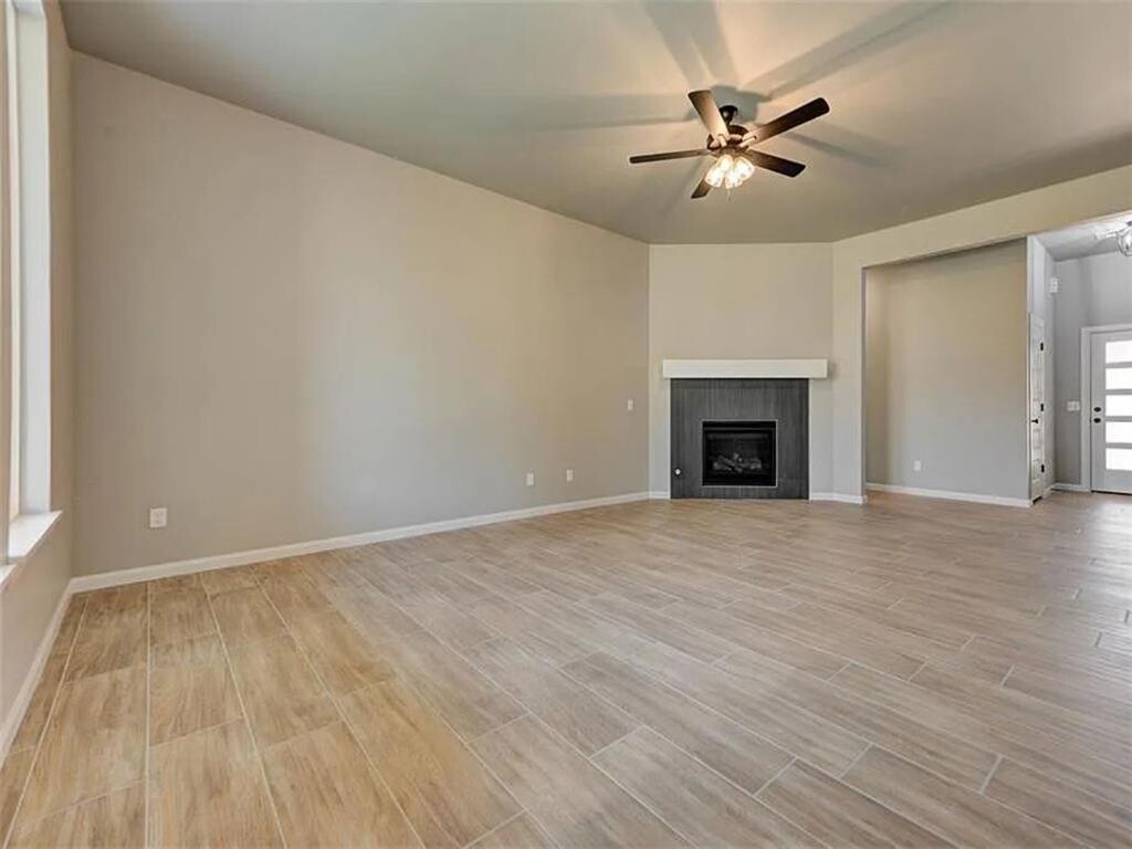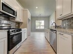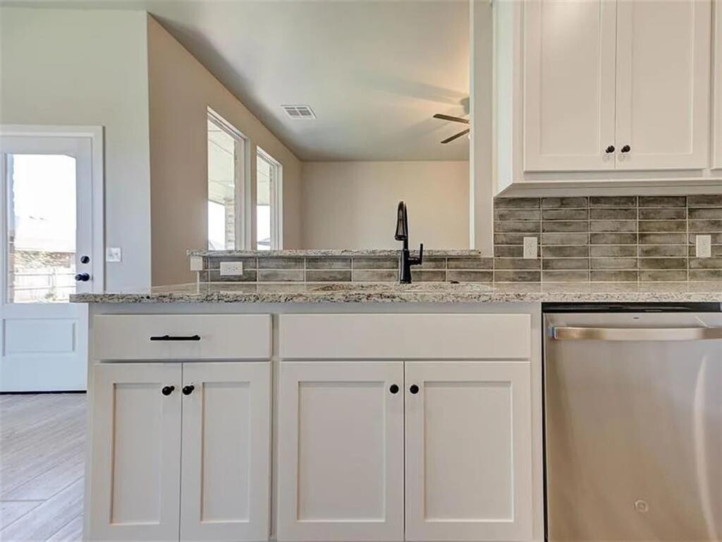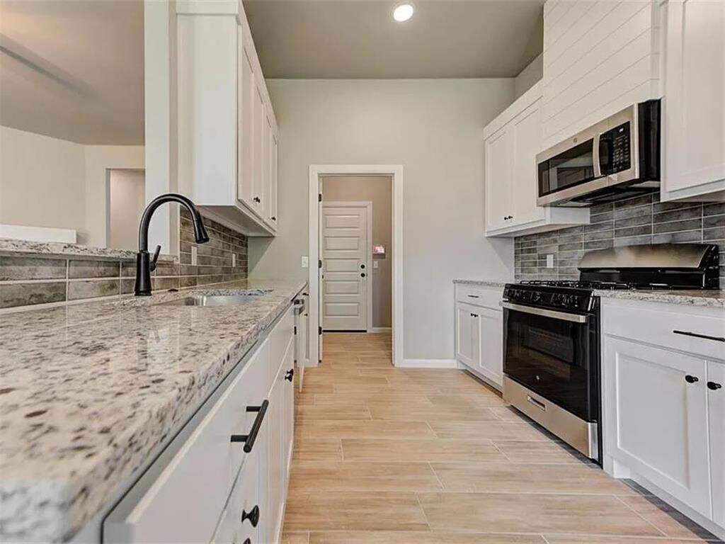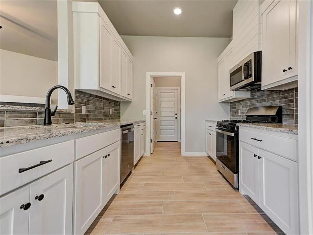 This newly constructed 4-bedroom,2-bath home offers a functional layout with an open living area featuring wood-look tile flooring,a cathedral ceiling,and a gas log fireplace. The kitchen includes granite countertops,a large island,stainless steel appliances (built-in microwave,gas range,and dishwasher),10-foot ceilings,and ample cabinet space. The primary bedroom includes a box ceiling,walk-in closet,and an ensuite bathroom with double vanities,a freestanding tub,and a separate shower. Additional bedrooms provide flexibility for family,guests,or a home office. Exterior features include a covered patio,fenced backyard,and a 3-car garage. The home also includes a dedicated laundry room,high-efficiency HVAC system,and a security system. Located near schools,shopping,and dining. Don’t miss out! Schedule a tour today to view this property.
