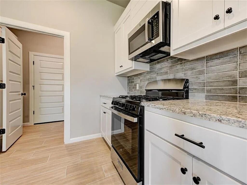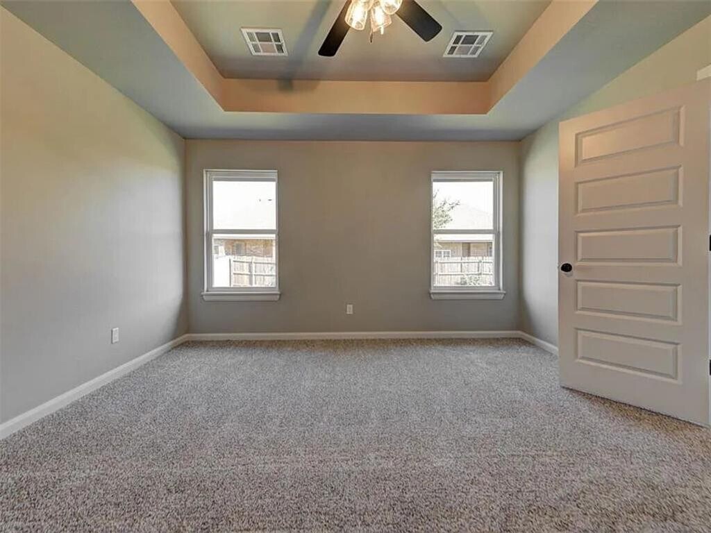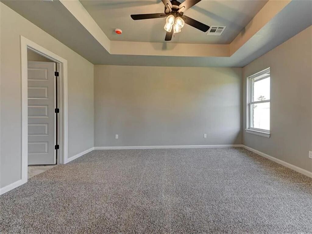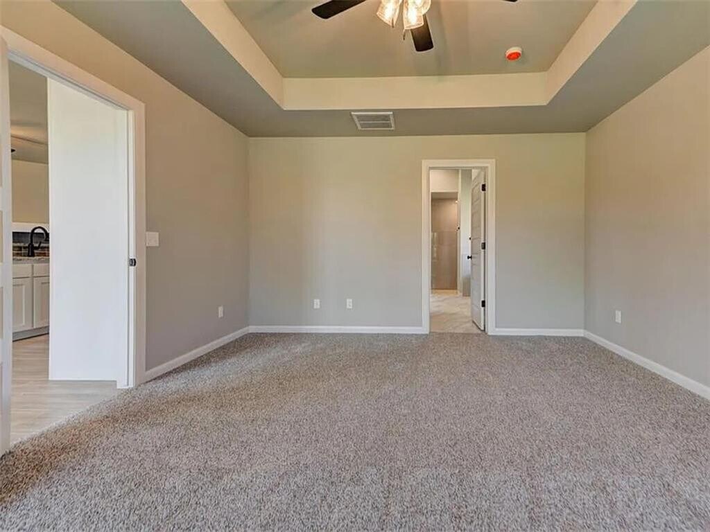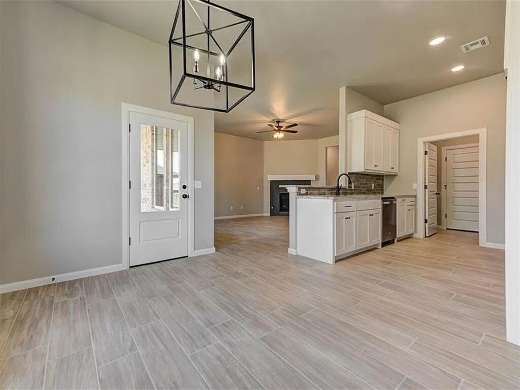 This newly constructed 4-bedroom,2-bath home offers a functional layout with an open living area featuring wood-look tile flooring,a cathedral ceiling,and a gas log fireplace. The kitchen includes granite countertops,a large island,stainless steel appliances (built-in microwave,gas range,and dishwasher),10-foot ceilings,and ample cabinet space. The primary bedroom includes a box ceiling,walk-in closet,and an ensuite bathroom with double vanities,a freestanding tub,and a separate shower. Additional bedrooms provide flexibility for family,guests,or a home office. Exterior features include a covered patio,fenced backyard,and a 3-car garage. The home also includes a dedicated laundry room,high-efficiency HVAC system,and a security system. Located near schools,shopping,and dining. Don’t miss out! Schedule a tour today to view this property.