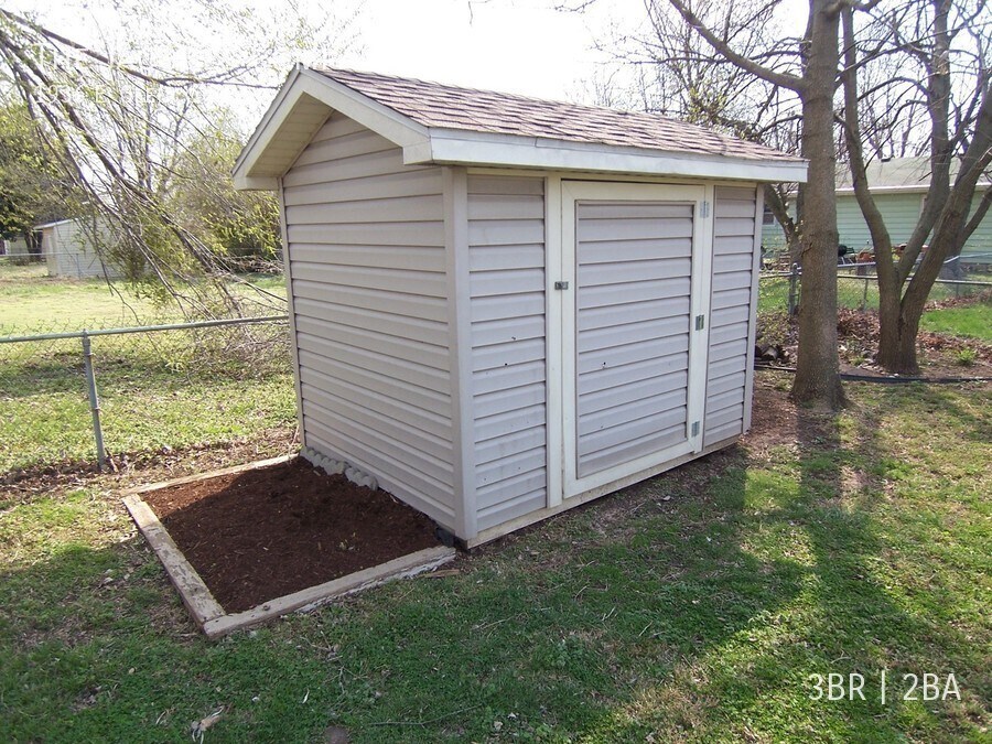 This 3 bedroom 2 bath home is in great condition. You will love the spacious living room as you enter and love even more the large family room on the back of the house. There is a covered patio off the family room and two nice storage buildings in the fenced back yard. The neighborhood is a one block long street with nice homes from end to end. The refrigerator in the home can be used but is not guaranteed and can be removed if you have your own. The fully refundable security deposit is an amount equal to one month's rent. A prepaid cleaning fee equal to 30% of the monthly rent will be paid at time of signing lease to be applied when vacating. Lease will expire April 30, 2026 and auto renew on July 1 of each year if tenant/landlord does not elect to terminate between April 30 and July 1. Move out options are April 30, May 31, June 30. Buyout options available if tenant needs to break lease.