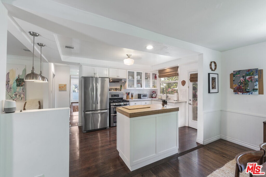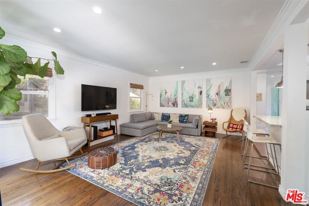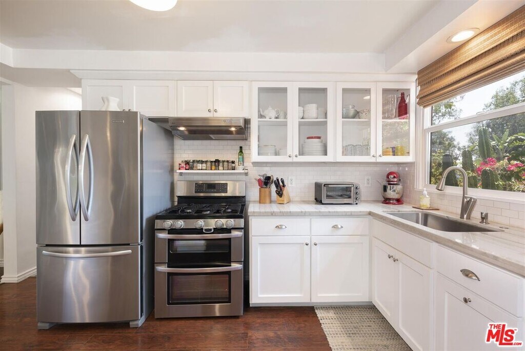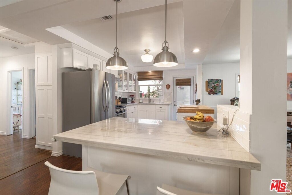 Tranquility and vistas abound on this one of a kind, hillside residential hideaway in highly desirable Silver Lake/Echo Park surrounded by boutiques and trendy eateries. Enter through a private and spacious patio with custom bench seating, gas pit and string lights into luxurious living. The warmth and natural light of the living room awaits you. A completely remodeled kitchen with all the accoutrements including stainless steel appliances and marble countertops would thrill any chef. The dining area is perfect for entertaining your guests or having an intimate dinner. Recessed lighting and hardwood floors throughout. A long hallway leads you past two large bedrooms and the main bedroom is complemented by a private patio perfect for enjoying your morning coffee while taking in the views of downtown Los Angeles and Elysian Valley Canyon. The downstairs with a separate entry is an ideal workspace or retreat, with a large bonus room, bedroom and bath. There is also a kitchen and off the living room, yet another patio with amazing views. The home is situated on a large lot with over 10 varieties of fruit trees, two raised garden beds, three tiers of destinations including a custom deck with cedar soaking tub, built in benches and bed lounges with a dining table for ten. Plus the large two car garage is insulated, with air conditioning and french doors that open to the deck. A true sanctuary in the city. MLS# 26641205