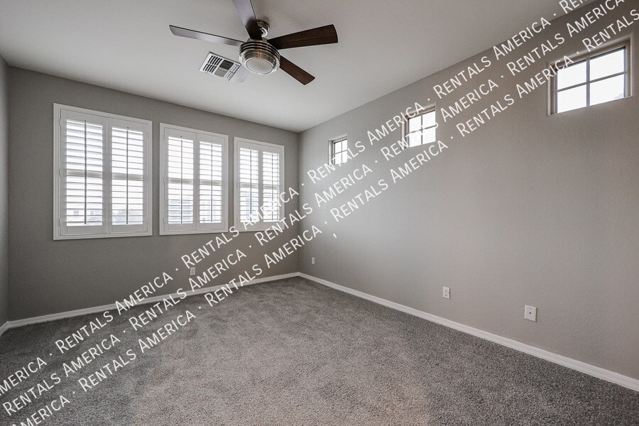 Everything you need with a 3 bedroom home! Your future residence is on a cul-de-sac lot in highly sought after area in Chandler. Welcoming you inside the home is neutral colored paint, wood-plank tile flooring, L-shaped kitchen with large island, granite counters & all SS appliances included. Beautiful dark cabinetry, plantation shutters, & ceiling fans throughout. 3 large-sized bedrooms, full laundry room & two full bathrooms are upstairs. Its primary suite boasts a deluxe full bath, dual sinks, separate tub, shower, & wardrobe closet. Bonus room or loft also on the 2nd floor with a comfortable bistro-sized balcony. Low maintenance graveled backyard has covered patio. Front yard landscaping included & you are steps away from resort-like community pool. One pet ok, 20 lbs max. Inquire now & apply early. One Time Admin Fee: $300, Pet Deposit: $300/pet (if applicable), Service Fee: 2%. $39/month Resident Benefits Package, Helping Heroes Discount Available! Carpet Ceramic Tile Community Pool Disposal Dryer Garage Pets Allowed Washer