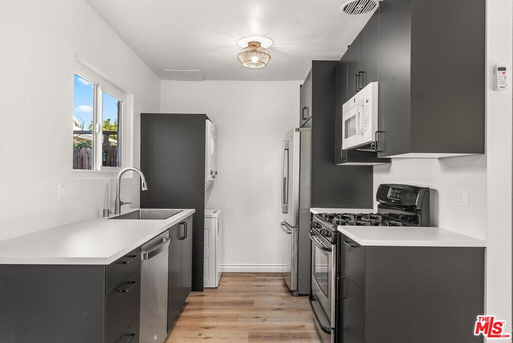 Renovated townhome apartment with AC, private laundry, private patio, new windows, new full kitchen, new bathroom with marble tile, gigantic bedrooms and two tandem car parking on a sunny, sleepy neighborhood street near Virginia Park in Santa Monica. This is a front end unit with no shared bedroom walls. Enjoy the playground, new basketball courts and Saturday farmers market and nearby Whole Foods, fantastic Santa Monica schools and restaurants and other amenities within walking distance. Ideal LA location close (but not too close) to the 10/405, UCLA, SMC, LAX and beaches. There are community security cameras. MLS# 25609385