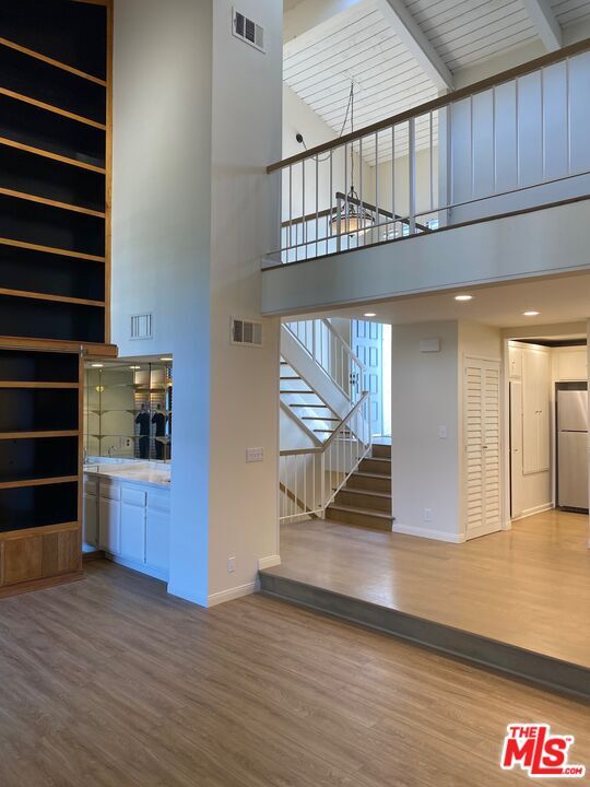 Stunning and spacious townhouse in wonderful gated complex in prime Westwood/Century City. This 1755 square foot townhome feels like a house with 2 bedrooms, 2.5 baths and huge 150 sf loft that can be used as an office/den or 3rd bedroom. The bright living room boasts soaring 20-foot ceilings, sliding glass doors, picturesque windows, floor-to-ceiling library, custom shutters, fireplace and large balcony overlooking a lushly landscaped exterior. Unit was just remodeled with updated kitchen/baths and brand new floors Two downstairs bedrooms provide privacy and a separate attached patio. The open kitchen comes complete with sparkling granite countertops, extensive cabinetry and top-notch stainless steel appliances, including a Wolf range. Other amenities include Nest thermostat, inside washer/dryer, tons of storage, direct access and 2 side-by-side parking spaces. Cable TV, internet, and water included with lease. Complex is well maintained with beautiful grounds, community spa and is walking distance to shops, restaurants and Westfield Mall. Located in the acclaimed Westwood Charter School District. Property is being offered unfurnished for a minimum 1-year lease. Available immediately! MLS# 25604229