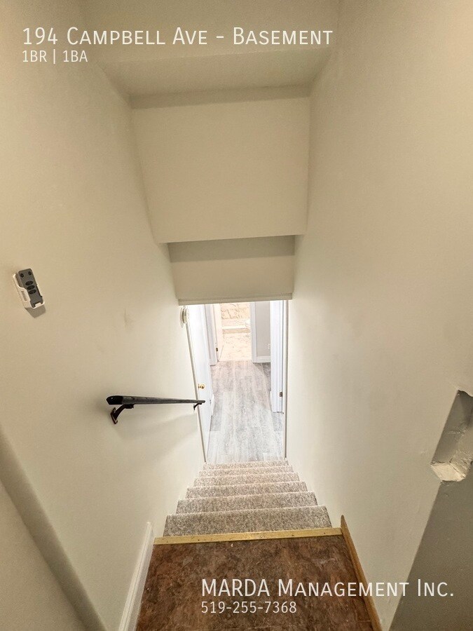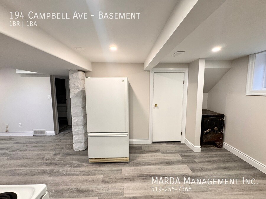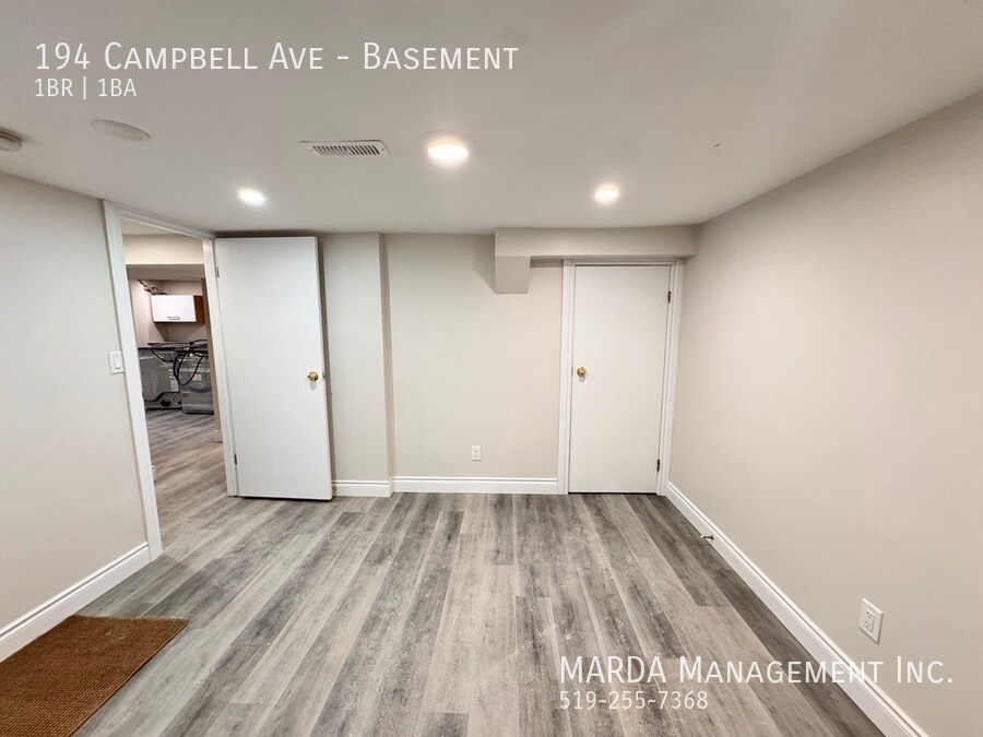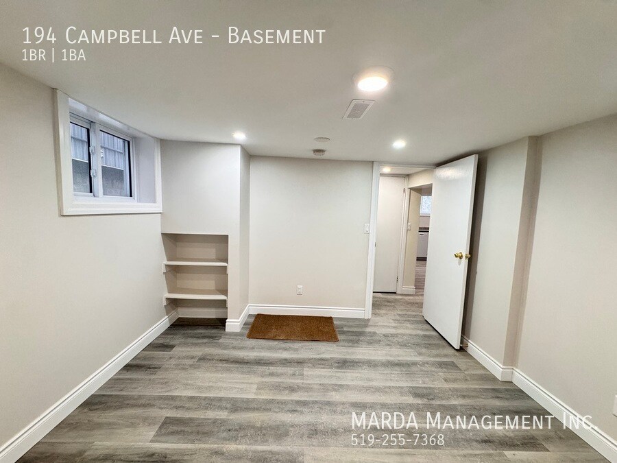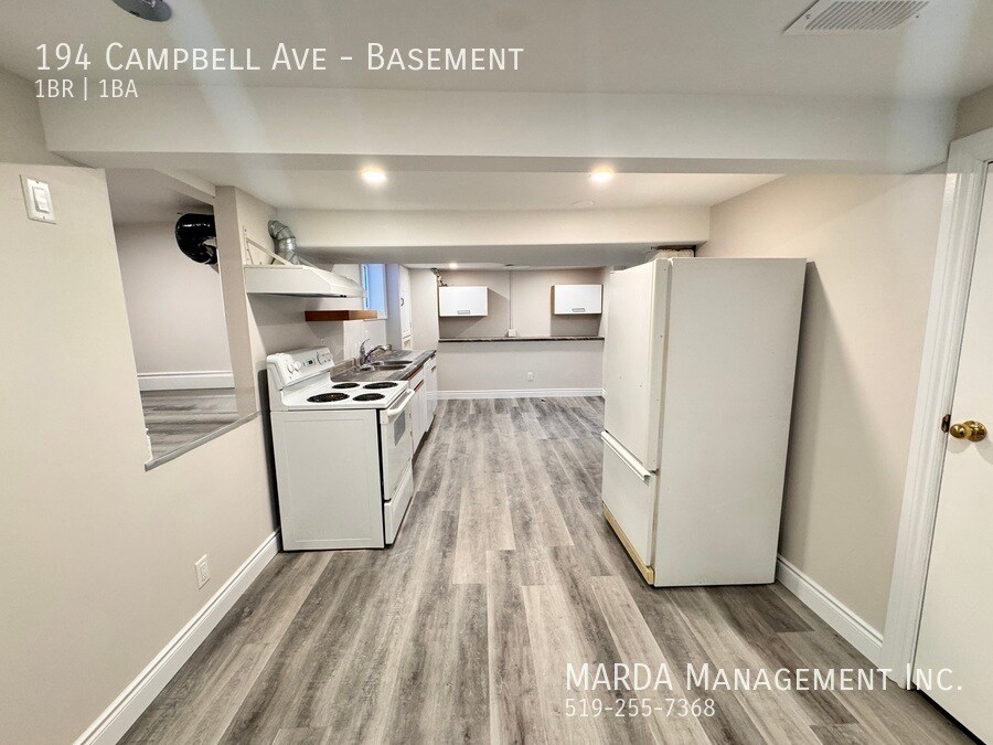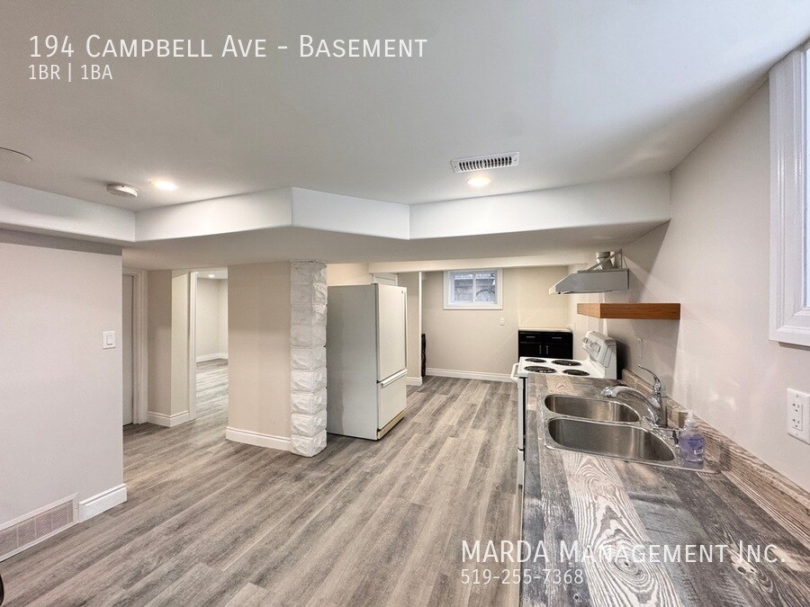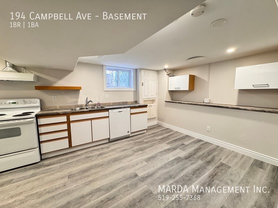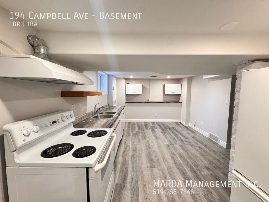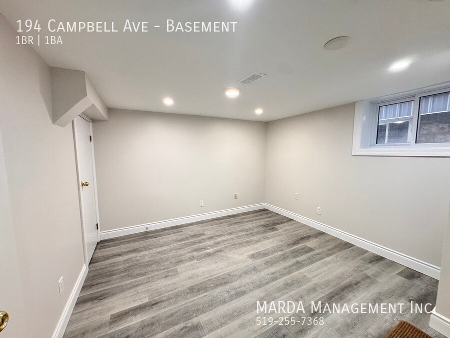 Welcome to 194 Campbell Basement, a newly renovated 1 bedroom, 1 bathroom unit offering modern finishes and a functional layout. This bright and spacious basement apartment features brand new laminate flooring throughout and multiple storage closets for added convenience. The bedroom is a good size and includes a closet. The bathroom offers a stand-up shower and clean, updated finishes. The open concept kitchen and living area provides a versatile space that can be arranged for both relaxing and dining. A dedicated laundry room with washer and dryer is included in the unit for your convenience. Tenants are responsible for 20% of hydro, water, and gas. One-year minimum lease. First and last months rent and a credit check are required. Professionally managed by MARDA Management, offering 24/7 maintenance support with a live agent and easy, convenient rent payment options. Call MARDA MANAGEMENT today at or Email to schedule your viewing! Freshly Painted Laminate Flooring No Smoking Allowed Pet Friendly Shared Back Yard