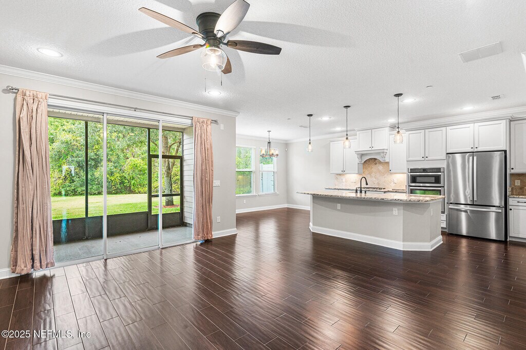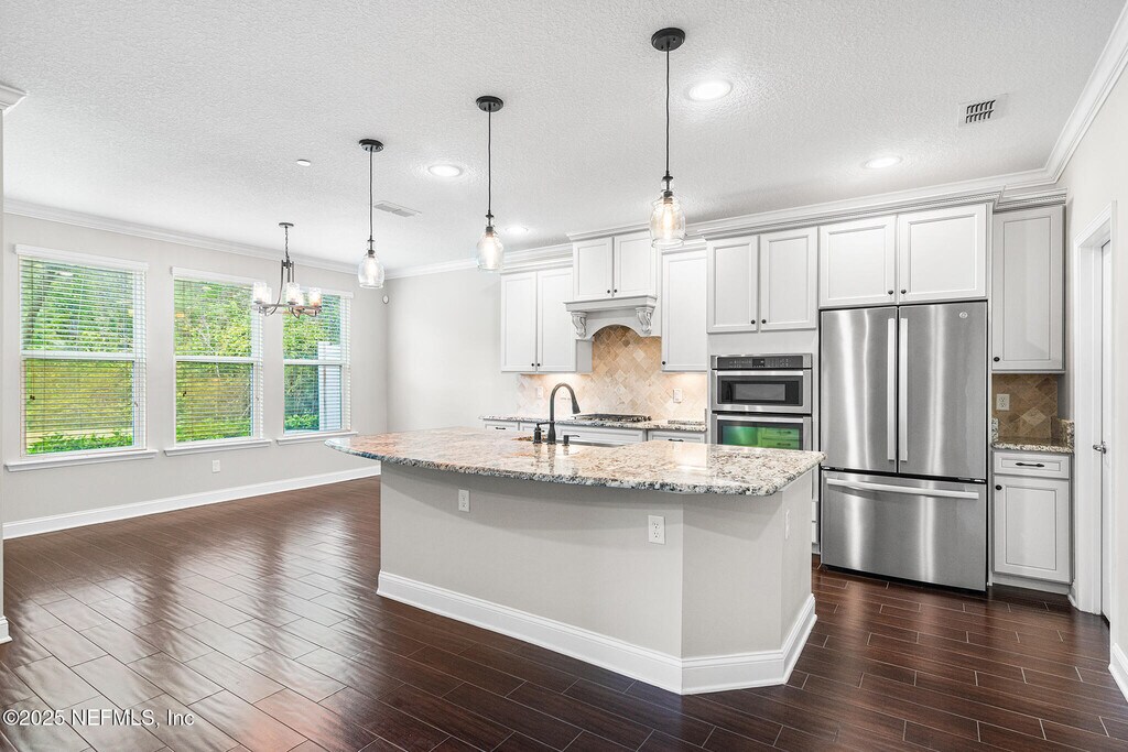 Step into this beautiful home with a kitchen that's a chef's dreamthink high-end cabinets,a gas cooktop with a vented hood,a roomy island,sleek granite countertops,and a farmhouse sink. You'll love the hardwood-look plank tile in the main areas. Open the sliding doors to chill on your private screened lanai with peaceful views of the preserve. Walk through the stylish front door,and you'll find a cozy loft,three bedrooms,and a laundry room upstairs that includes brand new washer and dryer plus whole house water softener. The primary suite is a real treat with tray ceilings,a garden tub,a tiled shower,and a massive closet. Plus,you're just a quick bike or golf cart ride from Nocatee's Town Center,where you can hit up grocery stores,shops,dining spots,and even a YMCA. With trails,dog parks,water parks,and sports courts nearby,there's always something fun to do! Nocatee amenities are included. MLS# 2103244