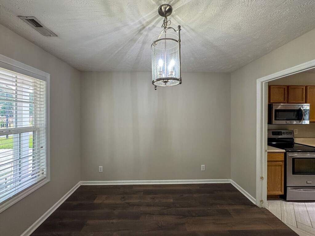 This charming home boasts 3 bedrooms and 2 full bathrooms. The eat-in kitchen offers space for meal preparation and casual dining. For more formal occasions, the separate dining room adds a touch of elegance. The primary bedroom offers convenience and privacy with its own en suite bathroom. The covered front porch creates an inviting atmosphere while the large patio and fenced backyard provides a space perfect for entertaining or simply enjoying the outdoors. No smoking. Pets are negotiable with a $250 nonrefundable fee for the first pet and $150 for any additional.