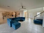 **AVAILABLE WITH 2 WEEK NOTICE**Beautiful lakefront home for rent in The Landing at Beacon Lake! This 4 bedroom,3.5 bathroom home offers nearly 3,800 sq ft of open-concept living space. Soaring ceilings and tile flooring flow throughout the main level. Just off the entry is a bonus room perfect for an office or den. The spacious living area opens to a stunning kitchen with 42' gray cabinets,quartz countertops,stainless steel appliances,large walk-in pantry,and dining area with bay window. The oversized primary suite is downstairs and features a tray ceiling,spa-like bath with dual vanities,soaking tub,walk-in shower,and custom closet that connects to the laundry room. Upstairs offers a loft with balcony overlooking the lake,three guest bedrooms,and two full baths including a Jack-and-Jill. Quad sliders lead to a screened lanai,paved path,private dock,and fenced backyard. MLS# 2130868