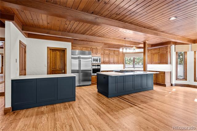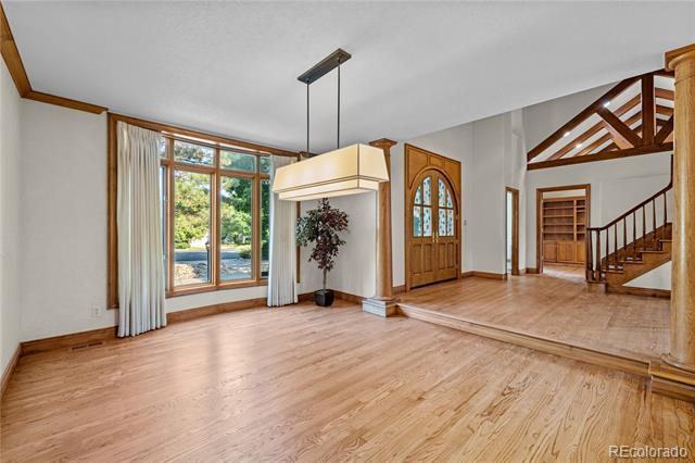 Nestled on a quiet culdesac in the highly sought after Cherry Hills Farm West neighborhood, this private home offers comfort, elegance, and plenty of space to live and entertain. Recently updated on both the main floor and basement, the home features soaring vaulted ceilings with custom wood details, five cozy gas fireplaces, and an abundance of natural light throughout. The chef’s kitchen is the heart of the home, complete with a large island, Sub Zero refrigerator, stainless steel appliances, breakfast bar, pantry, and ample cabinet space. The open layout flows seamlessly into the living room, where oversized windows overlook the enchanting backyard. Upstairs, the sun filled primary retreat offers a private deck, fireplace, walk-in closet, and a spa like ensuite bath with a soaking tub and separate shower. Three additional bedrooms and two full baths provide plenty of space for family or guests. The recently updated lower level includes a spacious recreation room, wet bar, wine cellar, professionally wired theater room, and an additional bedroom with full bath, perfect for hosting or relaxing. Enjoy peaceful mornings or evening strolls with direct access to the Little Dry Creek and Woody Hollow trail system right from your backyard. A 3 car garage, large office, and beautifully landscaped outdoor areas complete this exceptional home. Single Family Residence MLS# 5124811