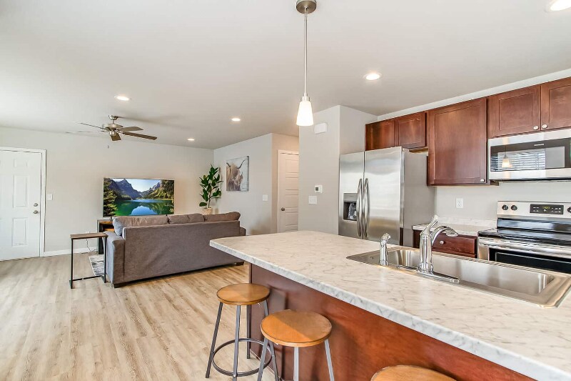 Property Id: 1596012 AVAILABLE: May 1st OPEN HOUSE: Saturday 4/18 @11am-1pm UNIT A is an unfurnished 1050 sqft apartment that features 3 bedrooms, 2 full bathrooms, 9ft ceilings and a wraparound balcony. It is fully equipped with quartz counters and brand new appliances: range oven, microwave, dishwasher, refrigerator, and stacked front loading washer & dryer. Quality LVP flooring is installed throughout the unit plus year-round comfort provided by gas heat & central A/C. Nestled in the master-planned Sweetgrass subdivision, you'll be just across from Laramie County Community College and minutes away from downtown Cheyenne and I-25. Enjoy the adjacent green space while parking is available in front of the apartment. UNIT A Lease Details: Monthly Rent: $1750 Lease Term: 12 months Security Deposit: $1750 (one month's rent) Utilities: Tenants responsible for gas & electric Max Occupants: 6 *furnished pictures are from model for reference