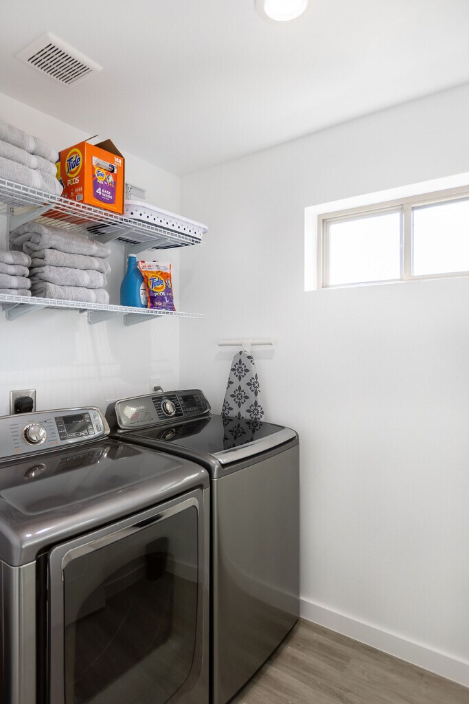 This beautiful three-story home is available for rent at $1,875 per month, or $2,100 per month fully furnished. Step inside to find gorgeous finishes throughout and a contemporary design that feels warm and inviting. The open floor plan connects the kitchen and living area seamlessly-perfect for both relaxing evenings and entertaining guests. The second floor features the primary bedroom with a luxurious en-suite bathroom, along with a conveniently located laundry room. The third floor offers two additional bedrooms and access to a private patio where you can enjoy peaceful lake views.
