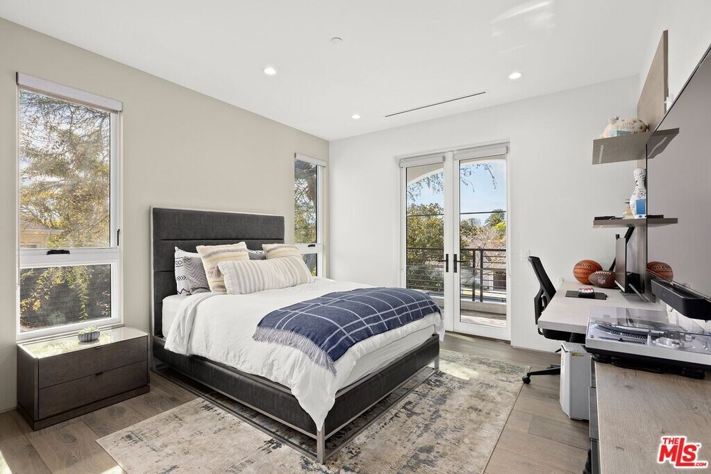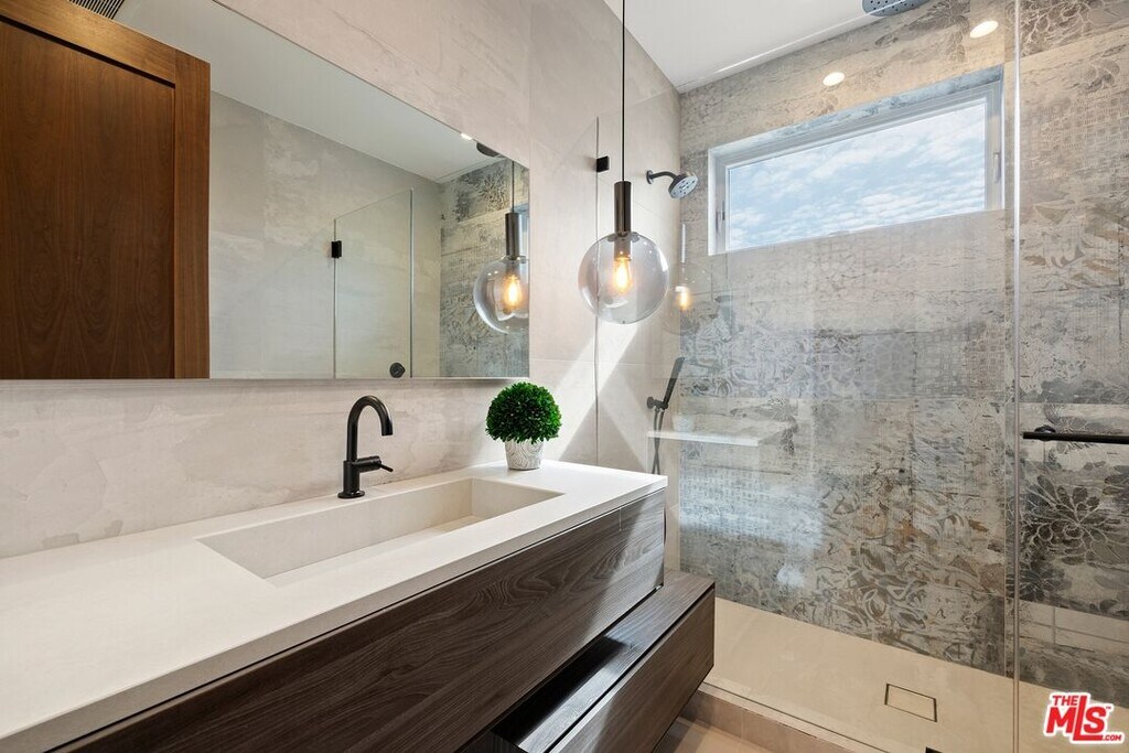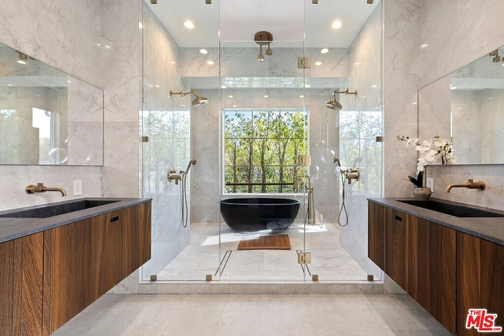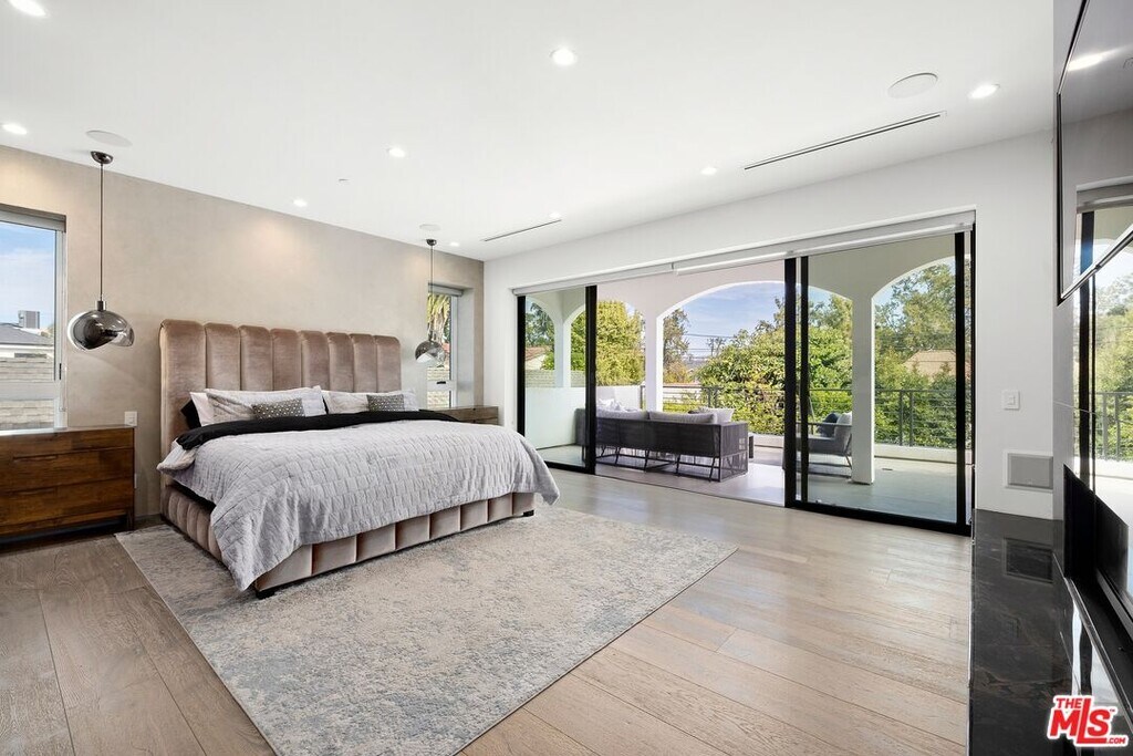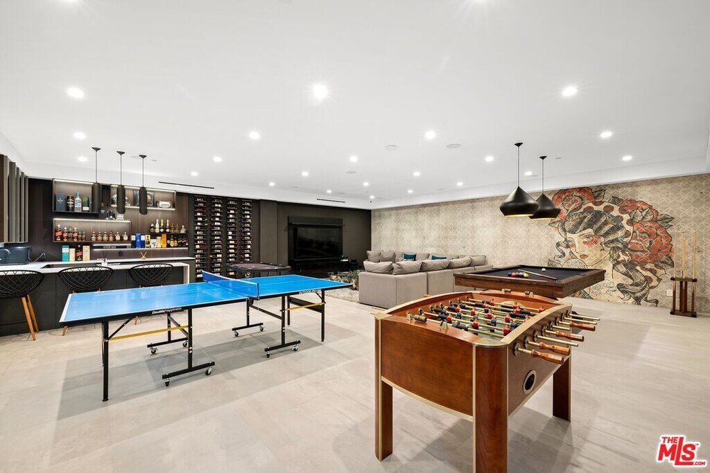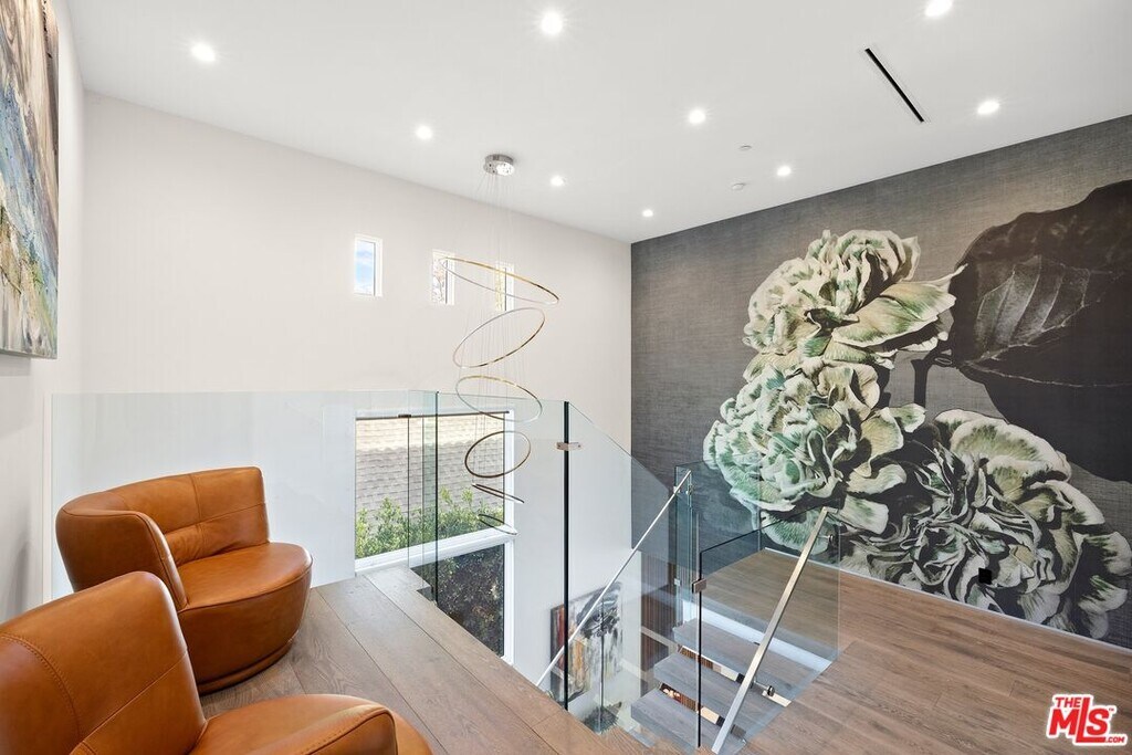 Wonderfully situated in West Los Angeles, this newly constructed contemporary home is perfectly positioned between Century City and Westwood. A sizable 6,800 sqft is laid out over three stories and includes five bedrooms and five full bathrooms, with tasteful details throughout. Vast entertainment spaces include highly polished floors, open room concepts, and sliding floor-to-ceiling windows that open to a loggia-style deck, which frames the pool, fountain, and spa, all within a private hedged back garden. The kitchen boasts dark cabinetry and a pull-up waterfall black marble island with Miele chef-grade appliances. Rounding out the main living space is a dining area with room to host 10 or more guests. Each floor is accessed via a floating concrete and polished steel stairwell, a secondary front-facing den with fireplace, and balcony creates a more intimate space before leading to the bedrooms. The primary suite boasts a black marble fireplace, oversized patio doors, and an archway-covered balcony that overlooks the pool. The ensuite has a stunning dual shower walkthrough-to-standalone tub, stone-topped vanities, and brass fixtures. Other bedrooms feature matching bathrooms and balconies. Unified features throughout include porcelain wide-planked white-washed flooring, recessed lighting, bespoke cabinet work, and unique wallpapers. Further amenities include a partially subterranean games room with a wine wall, wet bar, table tennis, pool table, and a large TV, a resolute space for sports gatherings. Nearby schools include Westwood Charter Elementary, Le Lycee Francais, Wildwood, and UCLA. 1940 Kelton is located close to Westwood Village, Westfield, and the famed Sawtelle Japanese district. Property can be leased furnished or unfurnished. MLS# 25611485