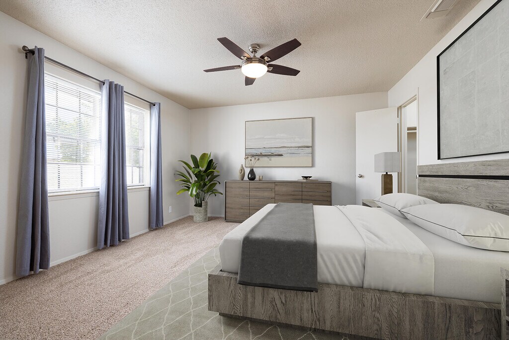 Completely remodeled in neutral colors! Large 1,800 sq ft 2 bedroom, 2.5 bathroom townhouse with plentiful storage throughout. 2 closets in each bedroom and a bonus office room with wall to wall storage. 2 car garage with additional storage closets. All new appliances. Completely private partially covered outdoor patio area. No lawn maintenance . Quiet, well kept neighborhood. Pet friendly with management approval . Available March 1st $1,950/month rent. $1,950 security deposit required. Please submit the form on this page for more info. All tenants over 18 must qualify