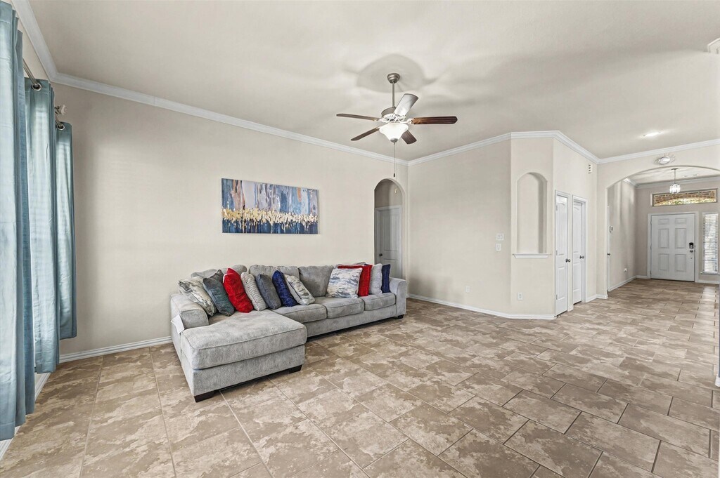 Beautiful one-story Lennar home located in the gated,master-planned community of Canyon Lakes West. This well-designed floor plan offers 3 spacious bedrooms,2 full baths,and a private study,ideal for working from home or flexible living. The open-concept kitchen features stainless steel appliances,a gas range,under-cabinet lighting,and a large breakfast bar that opens seamlessly to the living area—perfect for everyday living and entertaining. Enjoy added privacy with no back neighbors and a private backyard equipped with a gas line,ready for outdoor grilling. Canyon Lakes West offers an exceptional array of amenities including a fitness center,junior Olympic-size pool,splash pad,community lake,clubhouse,playgrounds,and scenic jogging trails. Near Houston National Golf Course. Access to additional amenities at Stone Gate,Canyon Lakes at Stone Gate,and Mira Mesa. Zoned to highly acclaimed Cy-Fair ISD schools. Couch,table and trampoline stay unless you prefer removal. MLS# 77787960