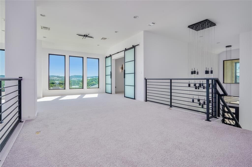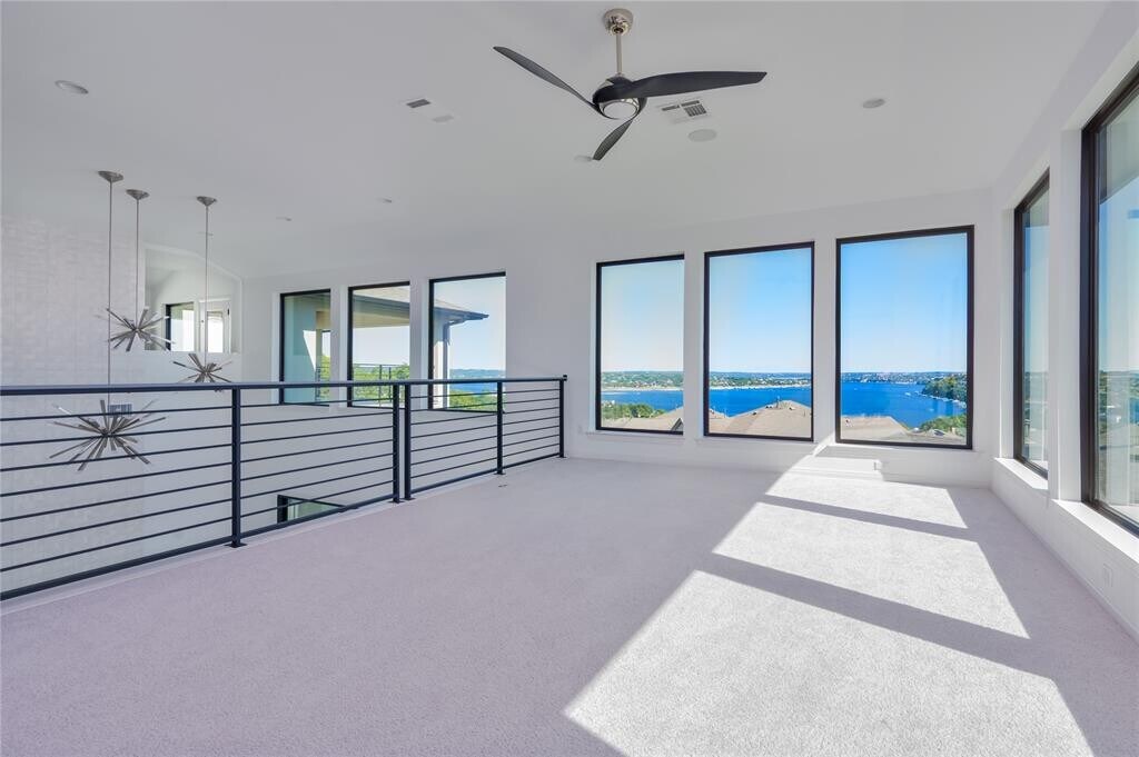 Welcome to 19408 Summit Glory Trail, located in The Summit at Lake Travis community. This property sits at a high elevation, offering privacy and expansive views of the Hill Country and portions of Lake Travis. The home combines functional design with quality craftsmanship and premium finishes throughout, plus gorgeous lake views! The floor plan provides versatility and space for modern living. The primary suite is located on the main floor, featuring a spacious bathroom and walk-in closet. A secondary bedroom and dedicated office are also located on the main level, providing convenience for guests or remote work. The kitchen opens to a large living and dining area, creating a comfortable flow for both daily use and entertaining. Upstairs, the home includes two additional bedrooms and multiple living and entertainment spaces, including balconies designed to take advantage of the surrounding views. Large windows throughout the property allow for natural light and showcase the scenic landscape from several vantage points. Residents of The Summit at Lake Travis enjoy proximity to Lake Travis activities, Hill Country Galleria, local dining, shopping, and major roadways for convenient access to Austin and surrounding areas. The property is zoned to the highly rated Lake Travis Independent School District, one of the most sought-after in Central Texas. This property provides the opportunity to lease a spacious, well-appointed home in a scenic Hill Country setting with modern amenities and easy access to schools, recreation, and retail.